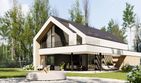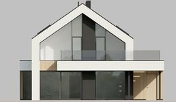 Graficzne opracowanie rzutów poglądowych widocznych na karcie projektu zostało wykonane przez Extradom.pl. Prezentowane przez Extradom.pl wizualizacje wykonane zostały przez autora projektu i należy poczytywać je jedynie za przykład i propozycję wykończenia, wizję architektoniczną autora projektu. Ostateczne wykończenie budynku może nastąpić na wiele sposobów. Szczegółowe rozwiązania zastosowane w oferowanej dokumentacji - w tym również ilość, lokalizacje i wygląd okien, drzwi, kominów - mogą w niewielkim stopniu różnić się od prezentowanej wizualizacji budynku.