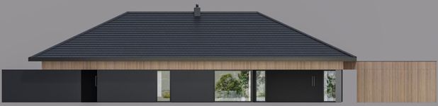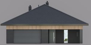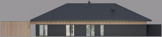 Graficzne opracowanie rzutów poglądowych widocznych na karcie projektu zostało wykonane przez Extradom.pl. Prezentowane przez Extradom.pl wizualizacje wykonane zostały przez autora projektu i należy poczytywać je jedynie za przykład i propozycję wykończenia, wizję architektoniczną autora projektu. Ostateczne wykończenie budynku może nastąpić na wiele sposobów. Szczegółowe rozwiązania zastosowane w oferowanej dokumentacji - w tym również ilość, lokalizacje i wygląd okien, drzwi, kominów - mogą w niewielkim stopniu różnić się od prezentowanej wizualizacji budynku.