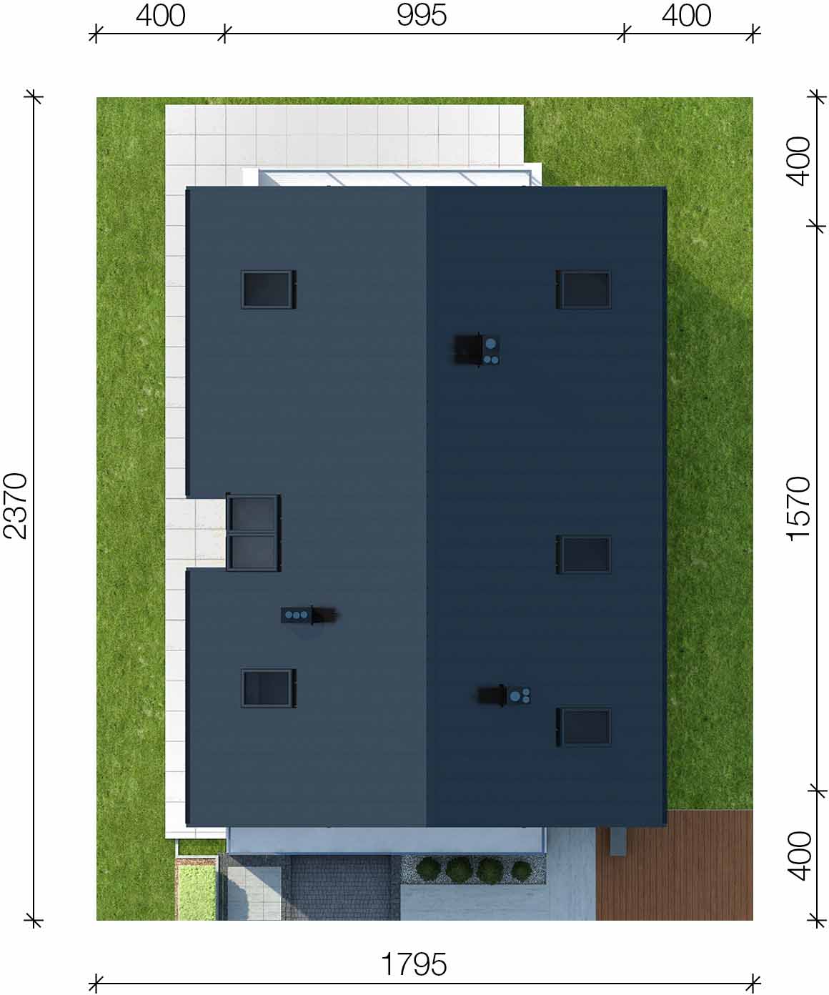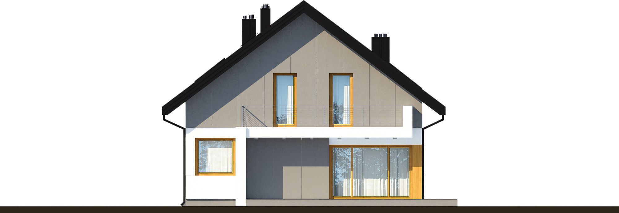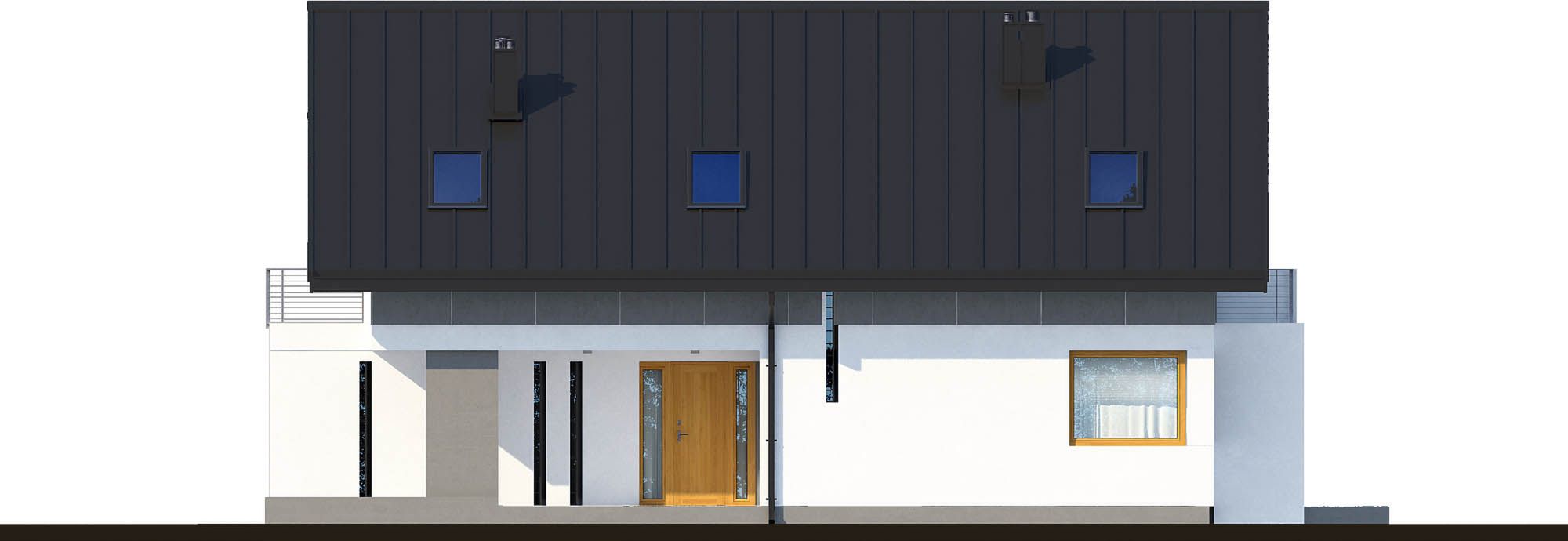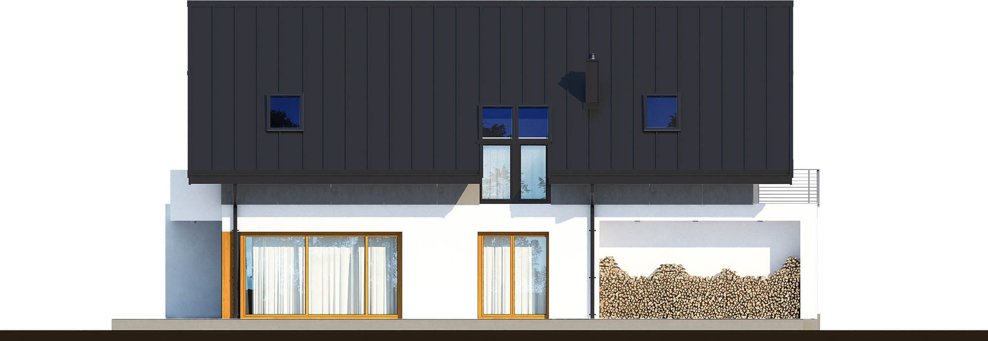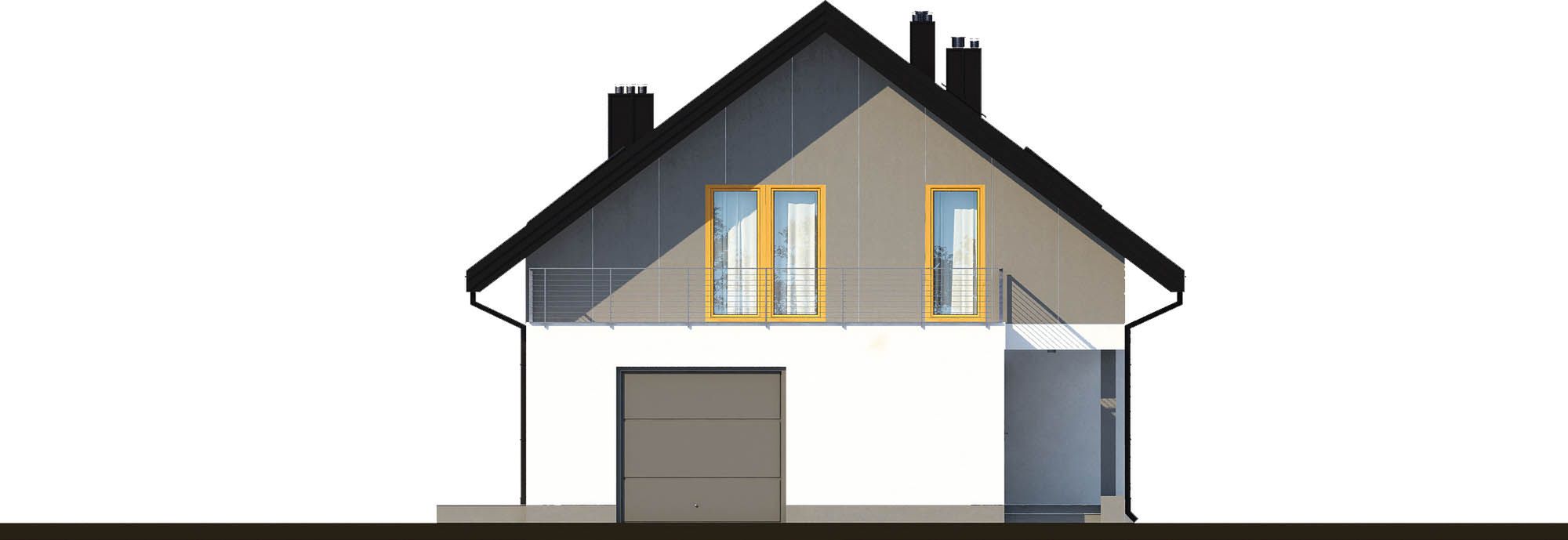 Graficzne opracowanie rzutów poglądowych widocznych na karcie projektu zostało wykonane przez Extradom.pl. Prezentowane przez Extradom.pl wizualizacje wykonane zostały przez autora projektu i należy poczytywać je jedynie za przykład i propozycję wykończenia, wizję architektoniczną autora projektu. Ostateczne wykończenie budynku może nastąpić na wiele sposobów. Szczegółowe rozwiązania zastosowane w oferowanej dokumentacji - w tym również ilość, lokalizacje i wygląd okien, drzwi, kominów - mogą w niewielkim stopniu różnić się od prezentowanej wizualizacji budynku.