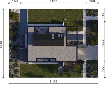 Graficzne opracowanie rzutów poglądowych widocznych na karcie projektu zostało wykonane przez Extradom.pl. Prezentowane przez Extradom.pl wizualizacje wykonane zostały przez autora projektu i należy poczytywać je jedynie za przykład i propozycję wykończenia, wizję architektoniczną autora projektu. Ostateczne wykończenie budynku może nastąpić na wiele sposobów. Szczegółowe rozwiązania zastosowane w oferowanej dokumentacji - w tym również ilość, lokalizacje i wygląd okien, drzwi, kominów - mogą w niewielkim stopniu różnić się od prezentowanej wizualizacji budynku.