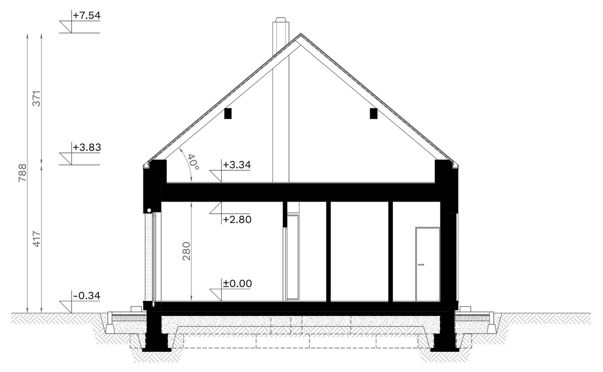 Fundamenty: tradycyjne - na ławach fundamentowych. Strop: żelbetowy wylewany. Ściany: dwuwarstwowe - pustak ceramiczny 25 cm + styropian Termo Organika 20 i 25 cm/wełna mineralna 18 cm. Dach: dwuspadowy kryty blachą. Elewacja: tynk silikonowy połączony z deską elewacyjną. Ogrzewanie: gazowe - piec kondensacyjny oraz ogrzewanie podłogowe w całym domu, dodatkowo w łazienkach tradycyjne grzejniki typu ręcznikowiec. Wentylacja: mechaniczna z rekuperacją. Rolety podtynkowe: tak – rozwiązania firmy ALUPROF.