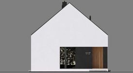 Graficzne opracowanie rzutów poglądowych widocznych na karcie projektu zostało wykonane przez Extradom.pl. Prezentowane przez Extradom.pl wizualizacje wykonane zostały przez autora projektu i należy poczytywać je jedynie za przykład i propozycję wykończenia, wizję architektoniczną autora projektu. Ostateczne wykończenie budynku może nastąpić na wiele sposobów. Szczegółowe rozwiązania zastosowane w oferowanej dokumentacji - w tym również ilość, lokalizacje i wygląd okien, drzwi, kominów - mogą w niewielkim stopniu różnić się od prezentowanej wizualizacji budynku.