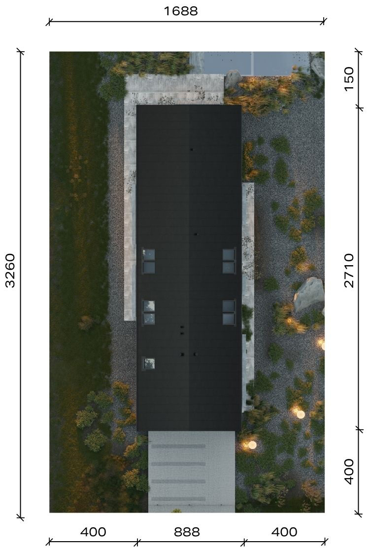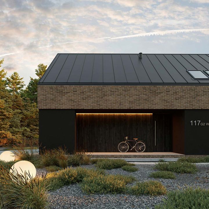 Graficzne opracowanie rzutów poglądowych widocznych na karcie projektu zostało wykonane przez Extradom.pl. Prezentowane przez Extradom.pl wizualizacje wykonane zostały przez autora projektu i należy poczytywać je jedynie za przykład i propozycję wykończenia, wizję architektoniczną autora projektu. Ostateczne wykończenie budynku może nastąpić na wiele sposobów. Szczegółowe rozwiązania zastosowane w oferowanej dokumentacji - w tym również ilość, lokalizacje i wygląd okien, drzwi, kominów - mogą w niewielkim stopniu różnić się od prezentowanej wizualizacji budynku.