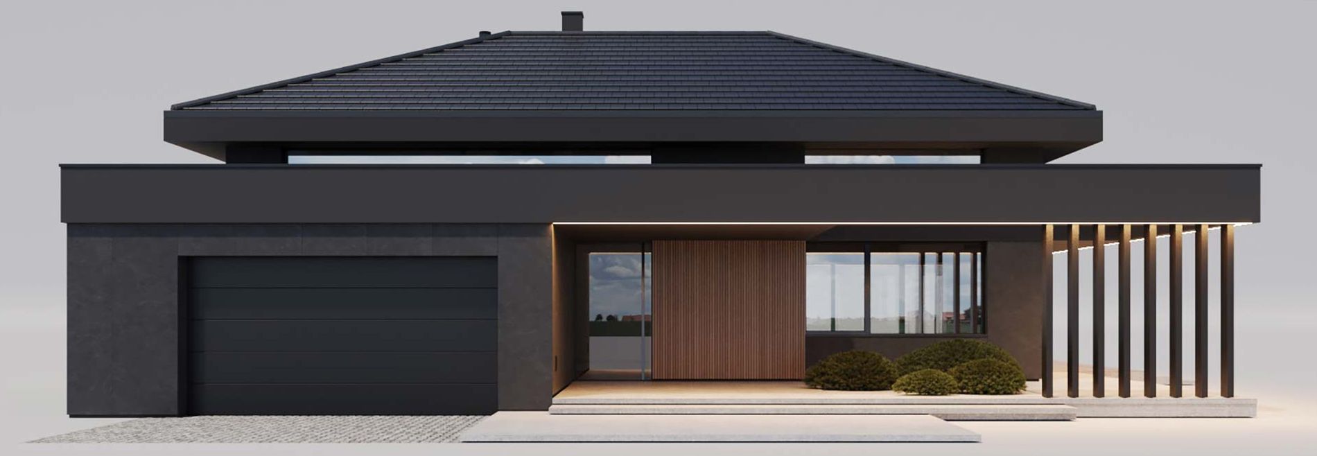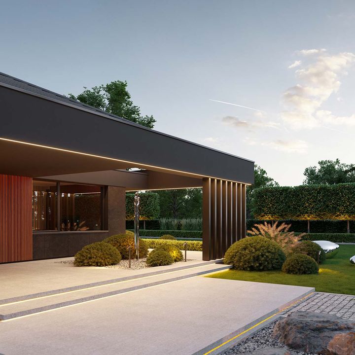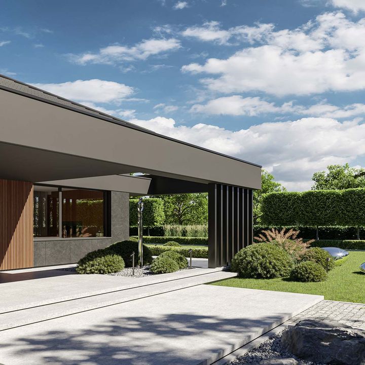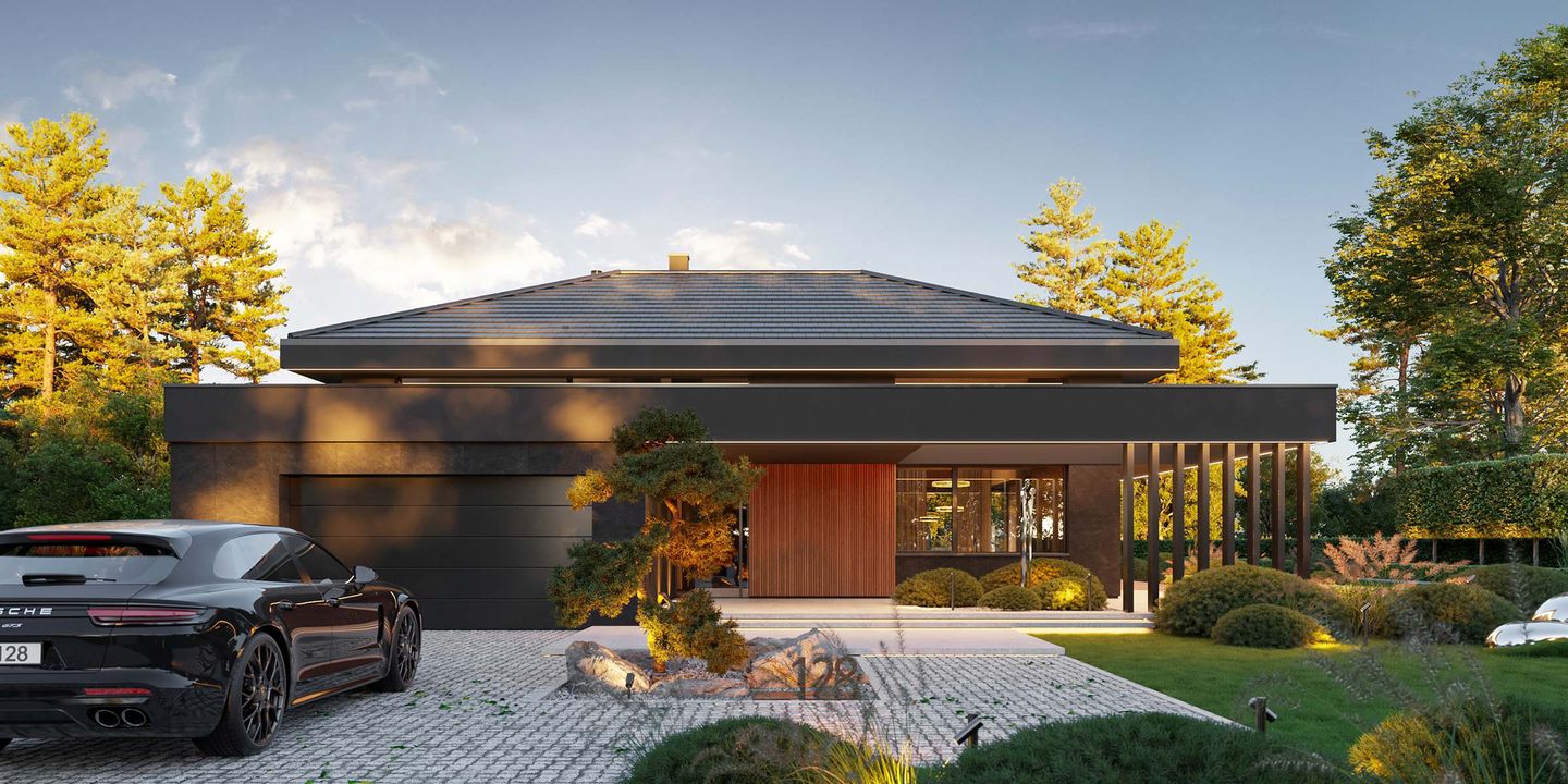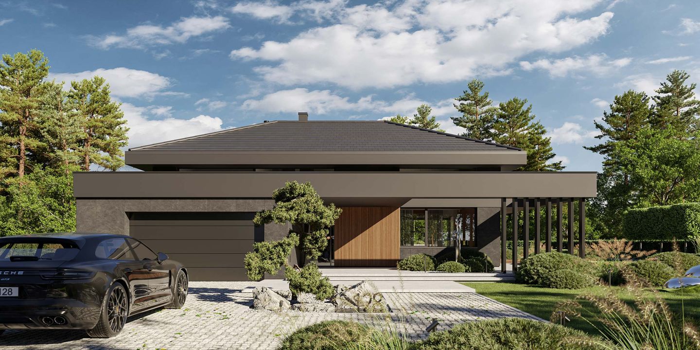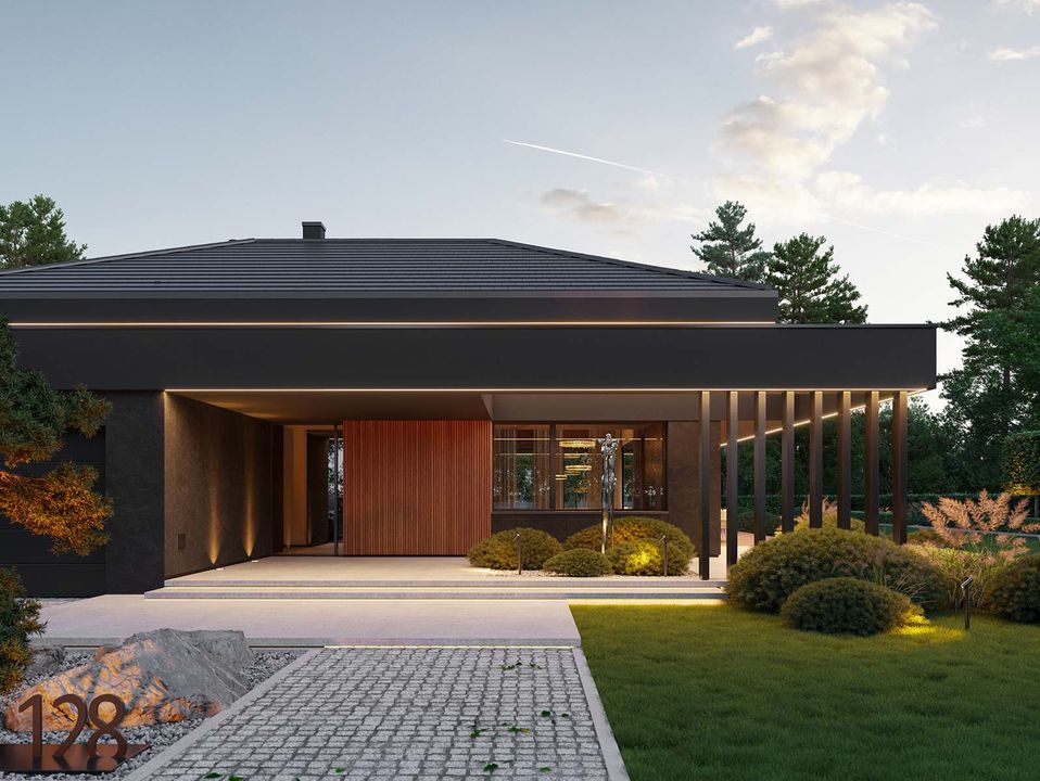 Graficzne opracowanie rzutów poglądowych widocznych na karcie projektu zostało wykonane przez Extradom.pl. Prezentowane przez Extradom.pl wizualizacje wykonane zostały przez autora projektu i należy poczytywać je jedynie za przykład i propozycję wykończenia, wizję architektoniczną autora projektu. Ostateczne wykończenie budynku może nastąpić na wiele sposobów. Szczegółowe rozwiązania zastosowane w oferowanej dokumentacji - w tym również ilość, lokalizacje i wygląd okien, drzwi, kominów - mogą w niewielkim stopniu różnić się od prezentowanej wizualizacji budynku.
