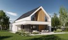 Graficzne opracowanie rzutów poglądowych widocznych na karcie projektu zostało wykonane przez Extradom.pl. Prezentowane przez Extradom.pl wizualizacje wykonane zostały przez autora projektu i należy poczytywać je jedynie za przykład i propozycję wykończenia, wizję architektoniczną autora projektu. Ostateczne wykończenie budynku może nastąpić na wiele sposobów. Szczegółowe rozwiązania zastosowane w oferowanej dokumentacji - w tym również ilość, lokalizacje i wygląd okien, drzwi, kominów - mogą w niewielkim stopniu różnić się od prezentowanej wizualizacji budynku.