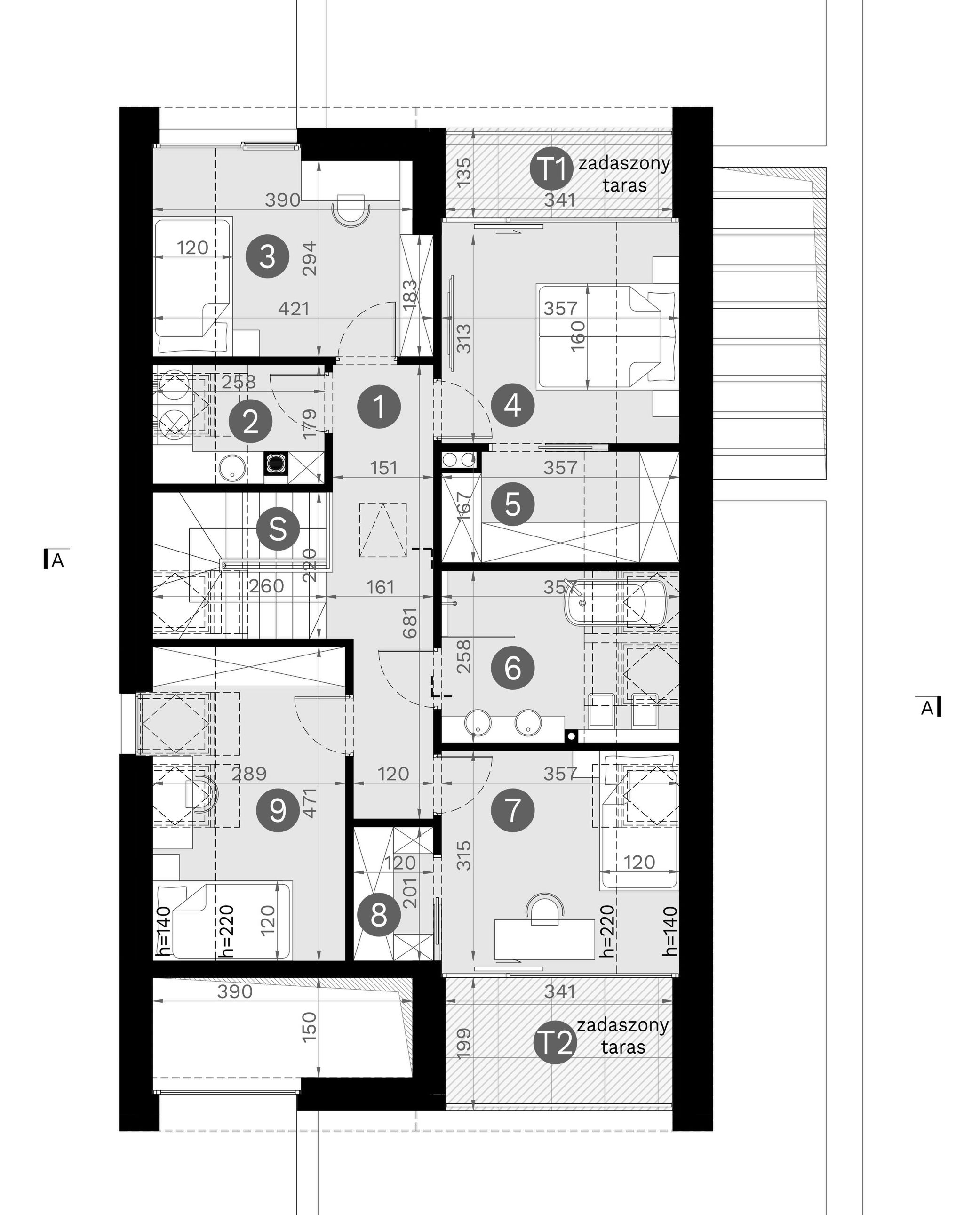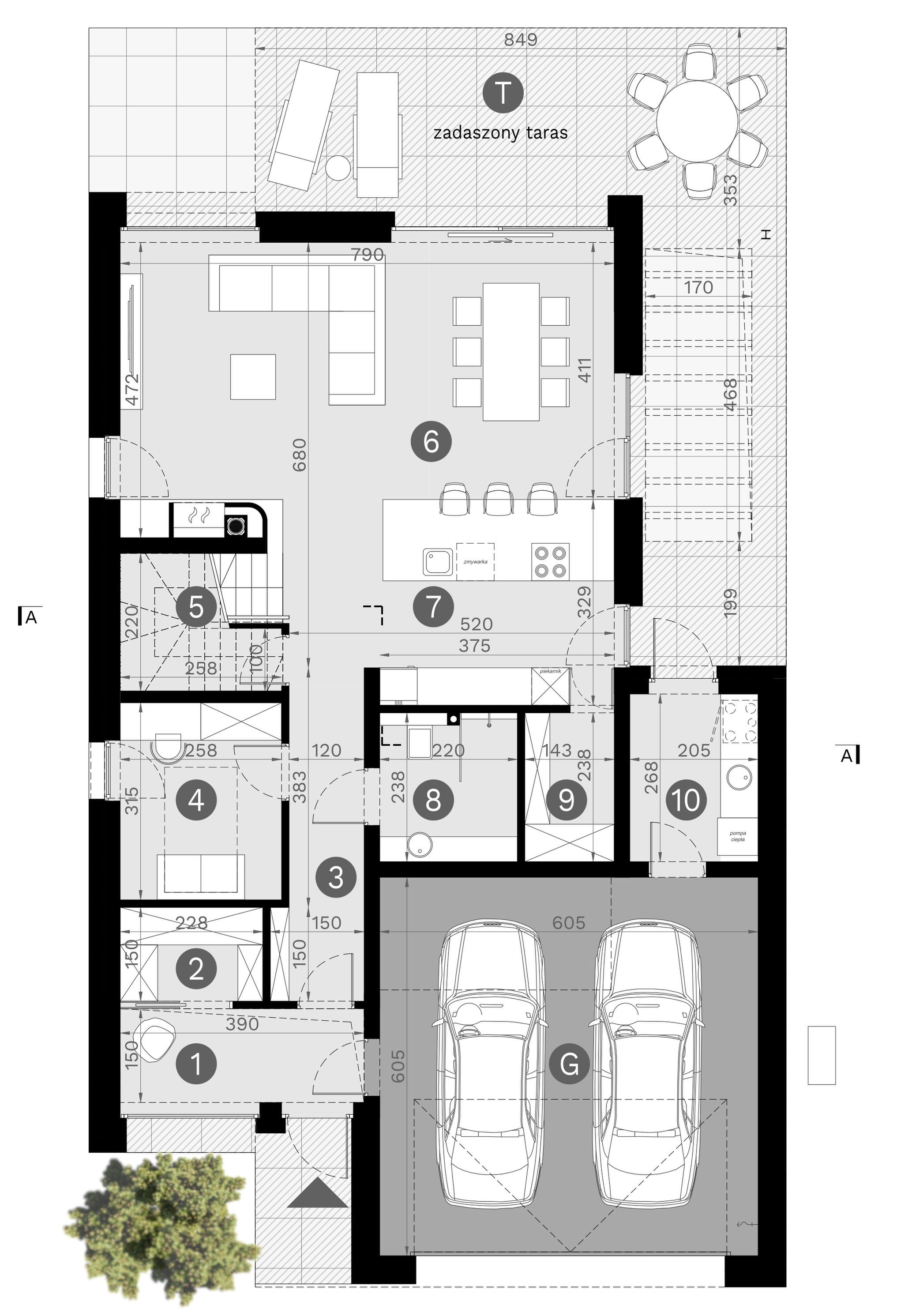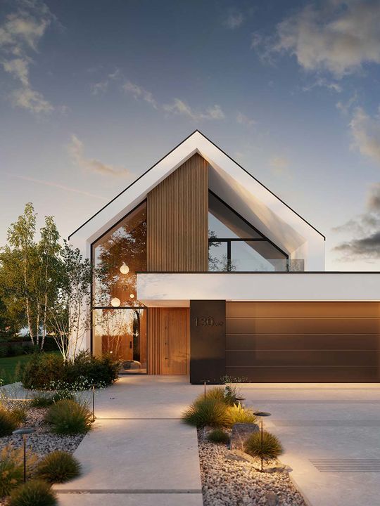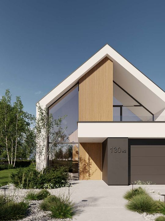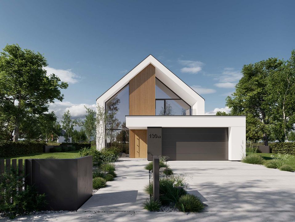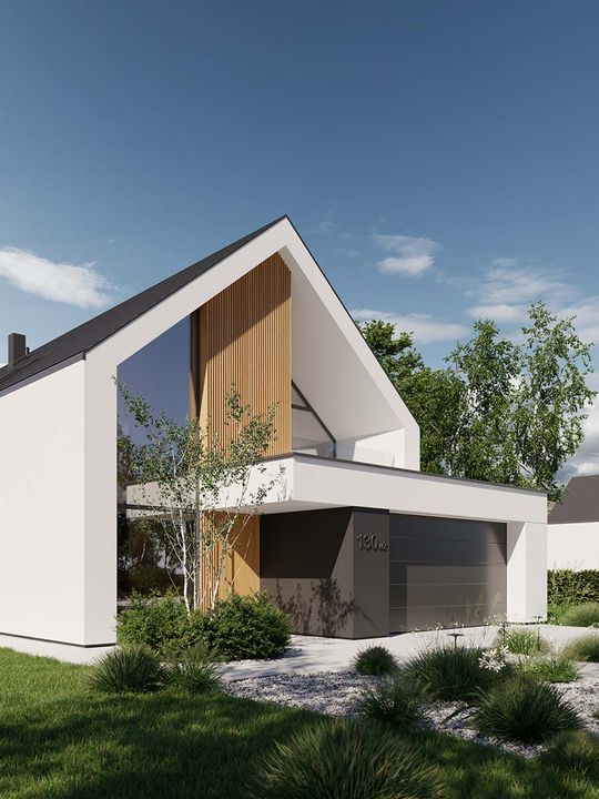 Fundamenty: tradycyjne - na ławach fundamentowych. Strop: żelbetowy wylewany. Ściany: dwuwarstwowe - pustak ceramiczny 25 cm + styropian Termo Organika 20 cm/wełna mineralna 18 cm. Dach: dwuspadowy kryty dachówką ceramiczną lub cementową swissporTON, stropodach pełny kryty membraną EPDM, okna dachowe FAKRO. Elewacja: tynk silikonowy połączony z deską elewacyjną lamelową. Ogrzewanie: powietrzna pompa ciepła, ogrzewanie podłogowe w całym domu, w łazienkach dodatkowo tradycyjne grzejniki typu ręcznikowiec. Wentylacja: mechaniczna z rekuperacją. Rolety podtynkowe: tak – rozwiązania firmy ALUPROF.