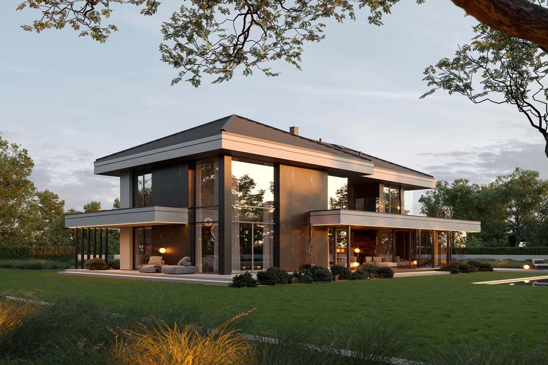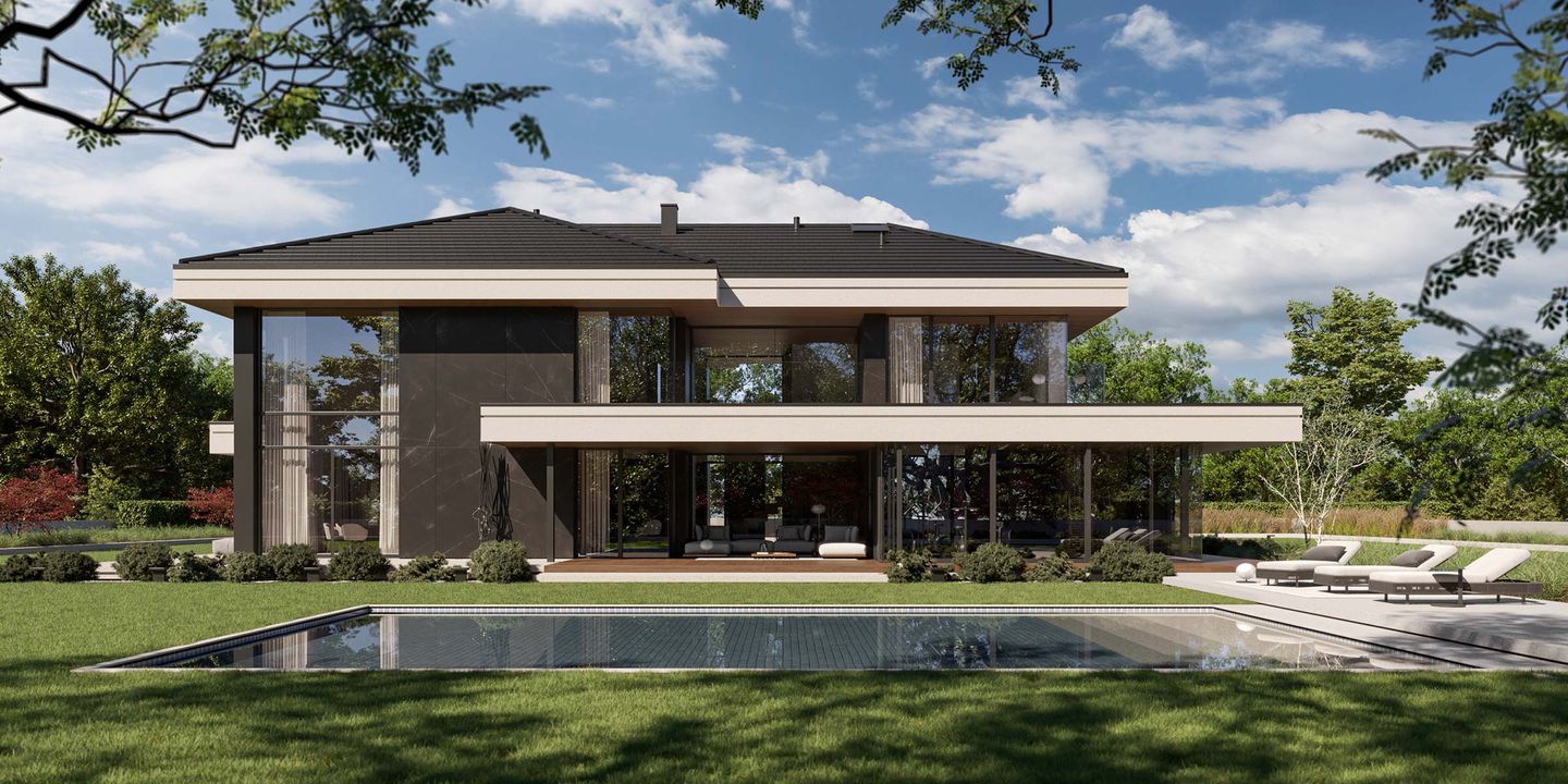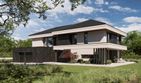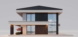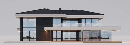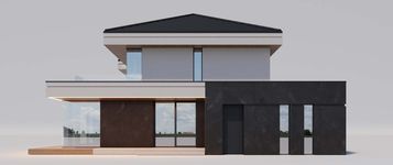 Graficzne opracowanie rzutów poglądowych widocznych na karcie projektu zostało wykonane przez Extradom.pl. Prezentowane przez Extradom.pl wizualizacje wykonane zostały przez autora projektu i należy poczytywać je jedynie za przykład i propozycję wykończenia, wizję architektoniczną autora projektu. Ostateczne wykończenie budynku może nastąpić na wiele sposobów. Szczegółowe rozwiązania zastosowane w oferowanej dokumentacji - w tym również ilość, lokalizacje i wygląd okien, drzwi, kominów - mogą w niewielkim stopniu różnić się od prezentowanej wizualizacji budynku.