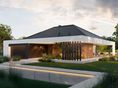 Graficzne opracowanie rzutów poglądowych widocznych na karcie projektu zostało wykonane przez Extradom.pl. Prezentowane przez Extradom.pl wizualizacje wykonane zostały przez autora projektu i należy poczytywać je jedynie za przykład i propozycję wykończenia, wizję architektoniczną autora projektu. Ostateczne wykończenie budynku może nastąpić na wiele sposobów. Szczegółowe rozwiązania zastosowane w oferowanej dokumentacji - w tym również ilość, lokalizacje i wygląd okien, drzwi, kominów - mogą w niewielkim stopniu różnić się od prezentowanej wizualizacji budynku.