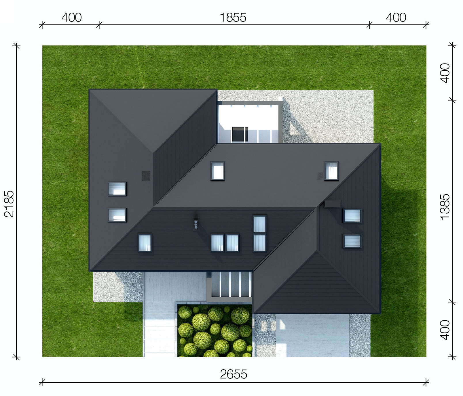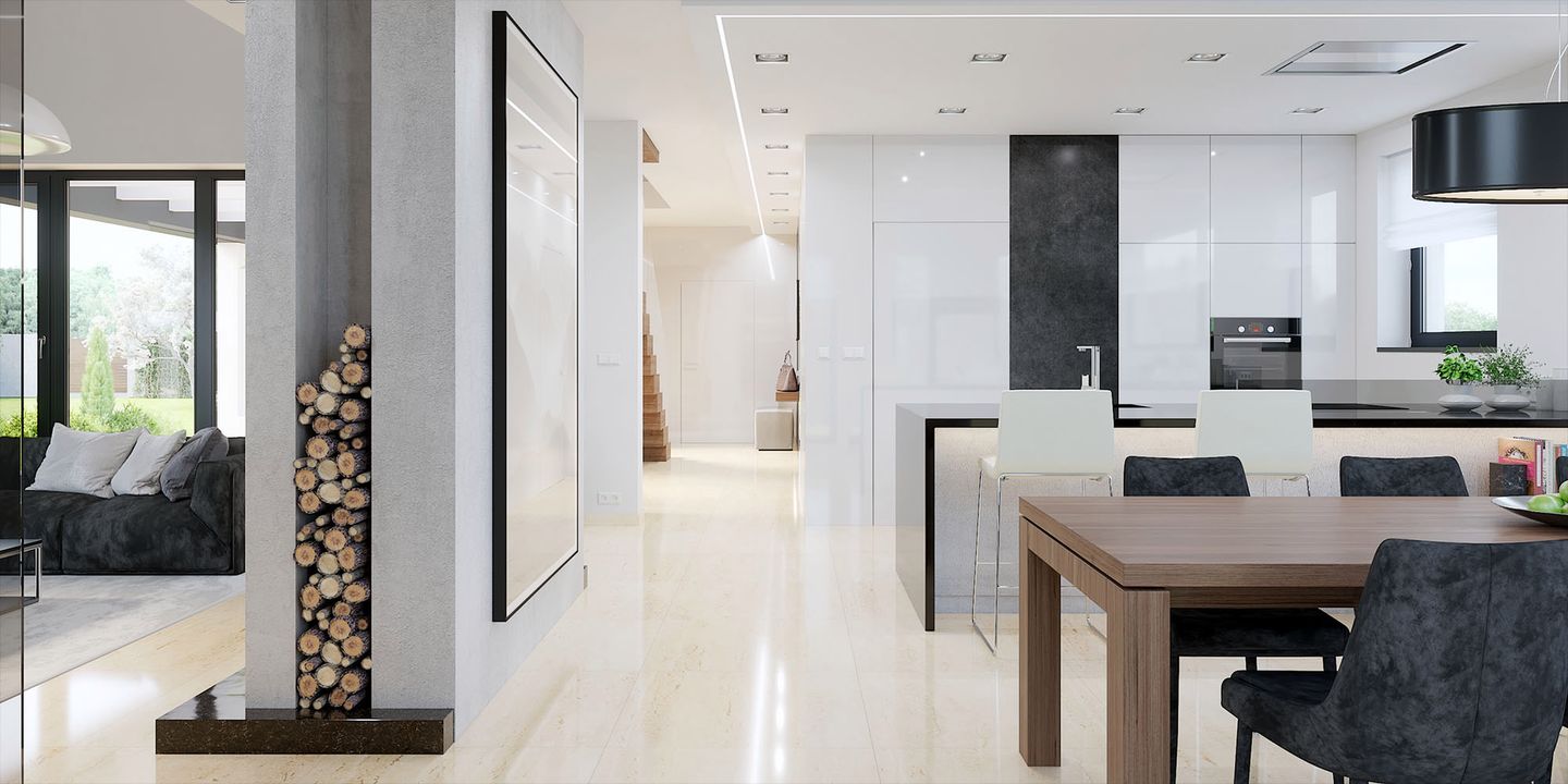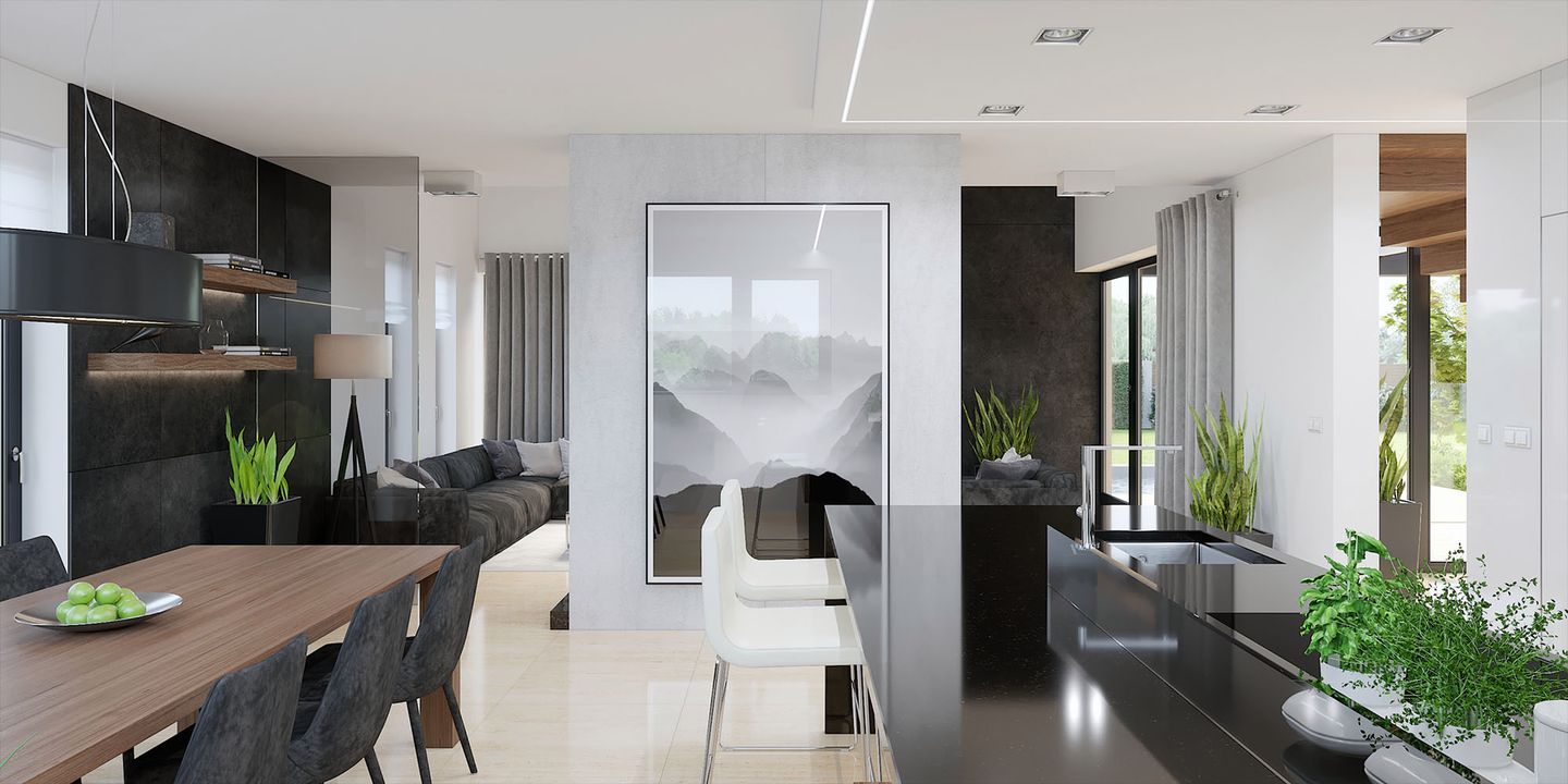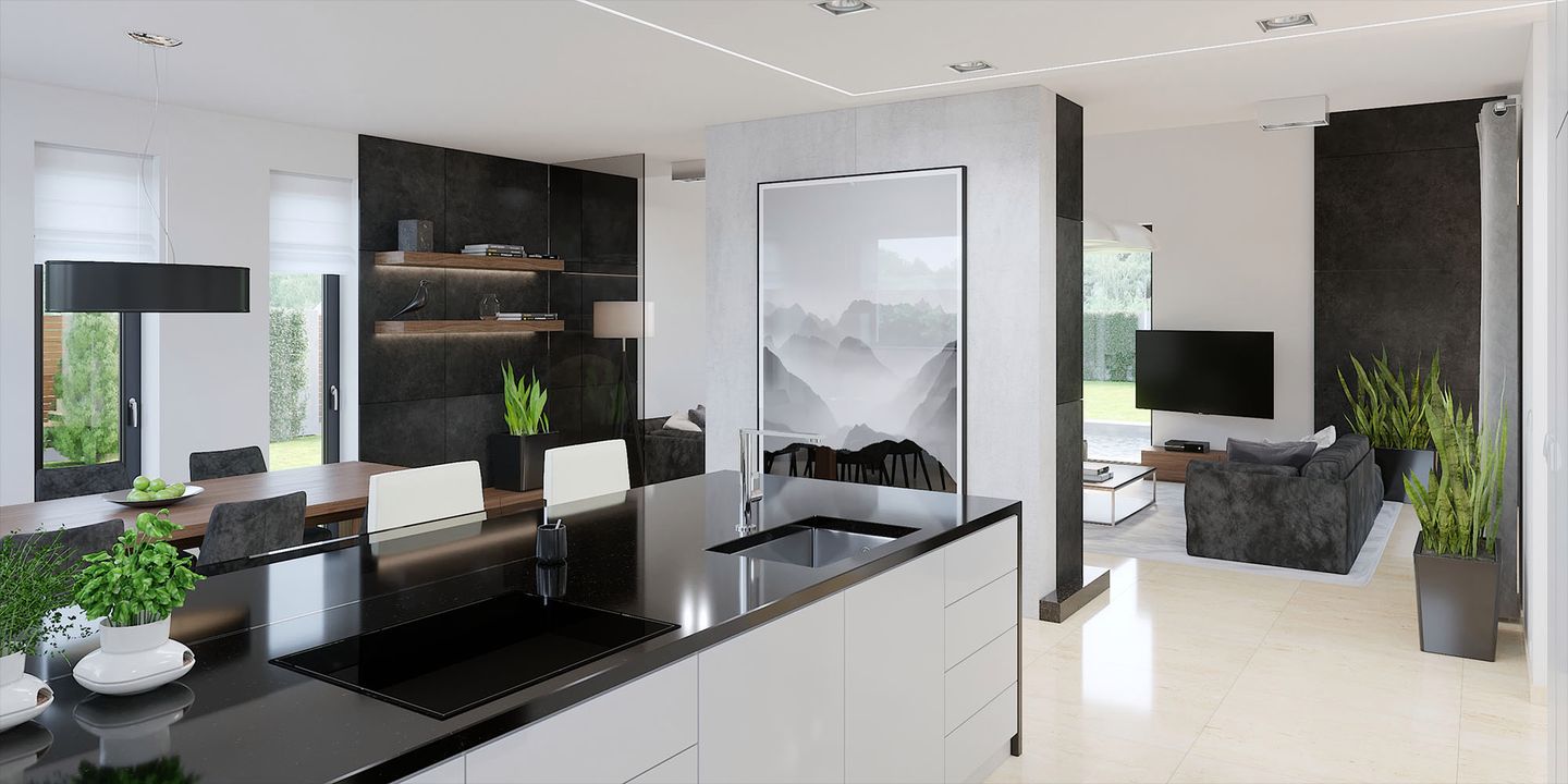 Graficzne opracowanie rzutów poglądowych widocznych na karcie projektu zostało wykonane przez Extradom.pl. Prezentowane przez Extradom.pl wizualizacje wykonane zostały przez autora projektu i należy poczytywać je jedynie za przykład i propozycję wykończenia, wizję architektoniczną autora projektu. Ostateczne wykończenie budynku może nastąpić na wiele sposobów. Szczegółowe rozwiązania zastosowane w oferowanej dokumentacji - w tym również ilość, lokalizacje i wygląd okien, drzwi, kominów - mogą w niewielkim stopniu różnić się od prezentowanej wizualizacji budynku.