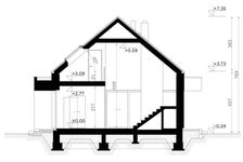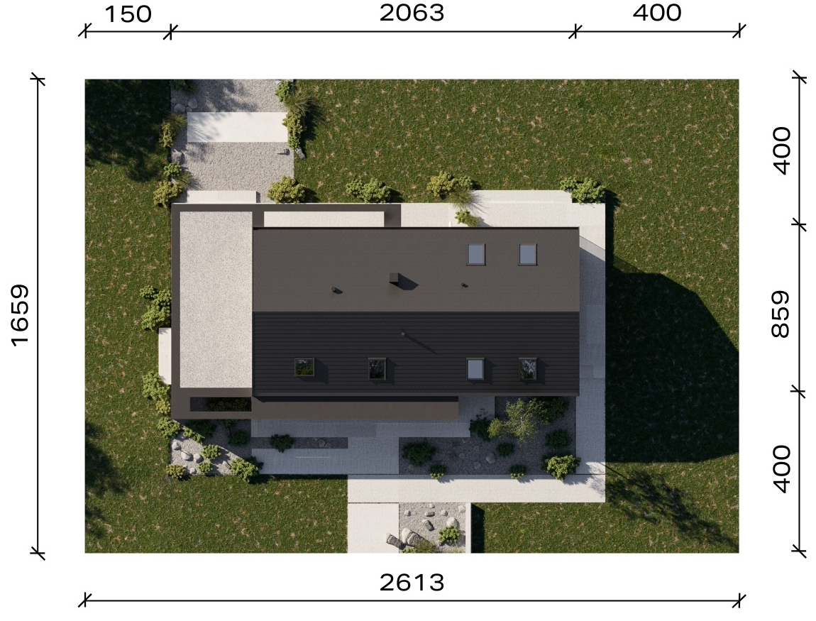 Graficzne opracowanie rzutów poglądowych widocznych na karcie projektu zostało wykonane przez Extradom.pl. Prezentowane przez Extradom.pl wizualizacje wykonane zostały przez autora projektu i należy poczytywać je jedynie za przykład i propozycję wykończenia, wizję architektoniczną autora projektu. Ostateczne wykończenie budynku może nastąpić na wiele sposobów. Szczegółowe rozwiązania zastosowane w oferowanej dokumentacji - w tym również ilość, lokalizacje i wygląd okien, drzwi, kominów - mogą w niewielkim stopniu różnić się od prezentowanej wizualizacji budynku.
