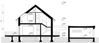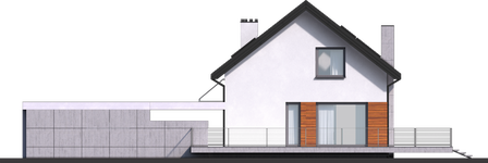 Graficzne opracowanie rzutów poglądowych widocznych na karcie projektu zostało wykonane przez Extradom.pl. Prezentowane przez Extradom.pl wizualizacje wykonane zostały przez autora projektu i należy poczytywać je jedynie za przykład i propozycję wykończenia, wizję architektoniczną autora projektu. Ostateczne wykończenie budynku może nastąpić na wiele sposobów. Szczegółowe rozwiązania zastosowane w oferowanej dokumentacji - w tym również ilość, lokalizacje i wygląd okien, drzwi, kominów - mogą w niewielkim stopniu różnić się od prezentowanej wizualizacji budynku.