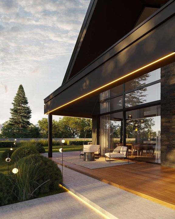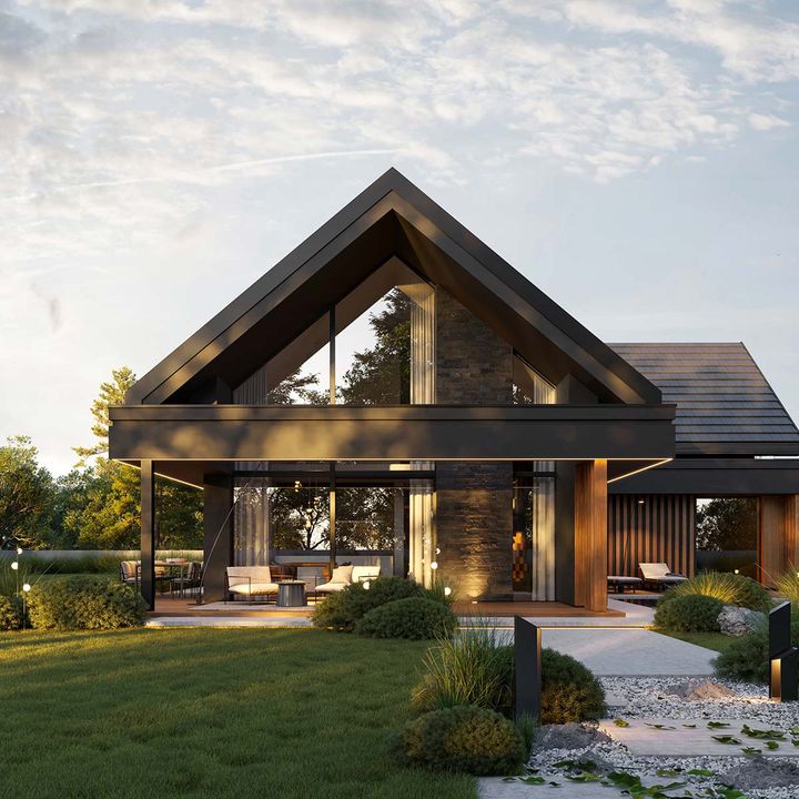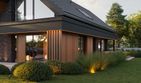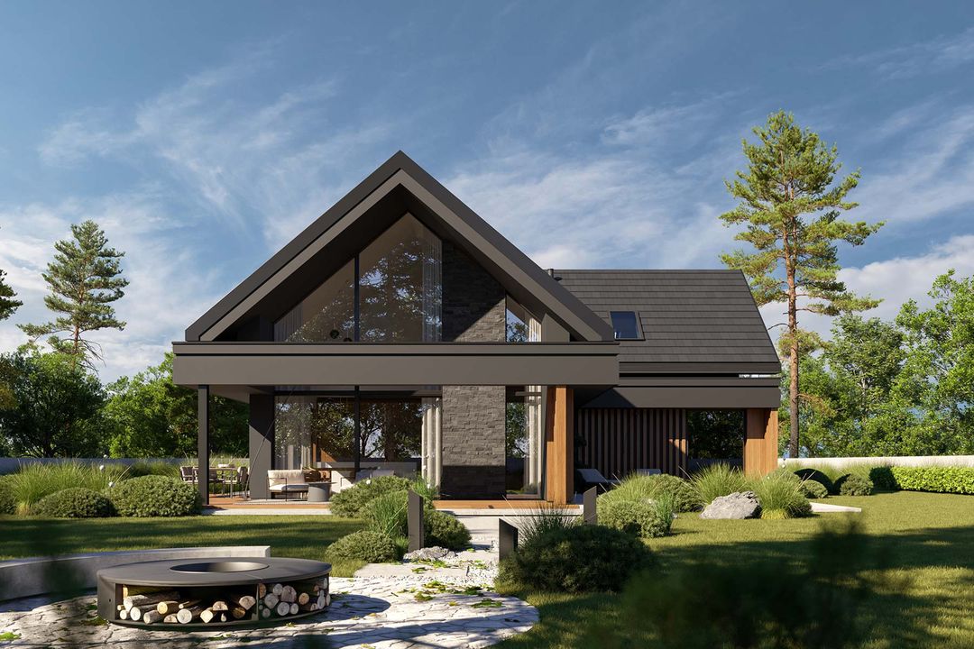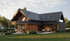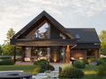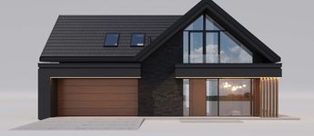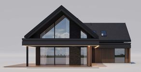 Graficzne opracowanie rzutów poglądowych widocznych na karcie projektu zostało wykonane przez Extradom.pl. Prezentowane przez Extradom.pl wizualizacje wykonane zostały przez autora projektu i należy poczytywać je jedynie za przykład i propozycję wykończenia, wizję architektoniczną autora projektu. Ostateczne wykończenie budynku może nastąpić na wiele sposobów. Szczegółowe rozwiązania zastosowane w oferowanej dokumentacji - w tym również ilość, lokalizacje i wygląd okien, drzwi, kominów - mogą w niewielkim stopniu różnić się od prezentowanej wizualizacji budynku.