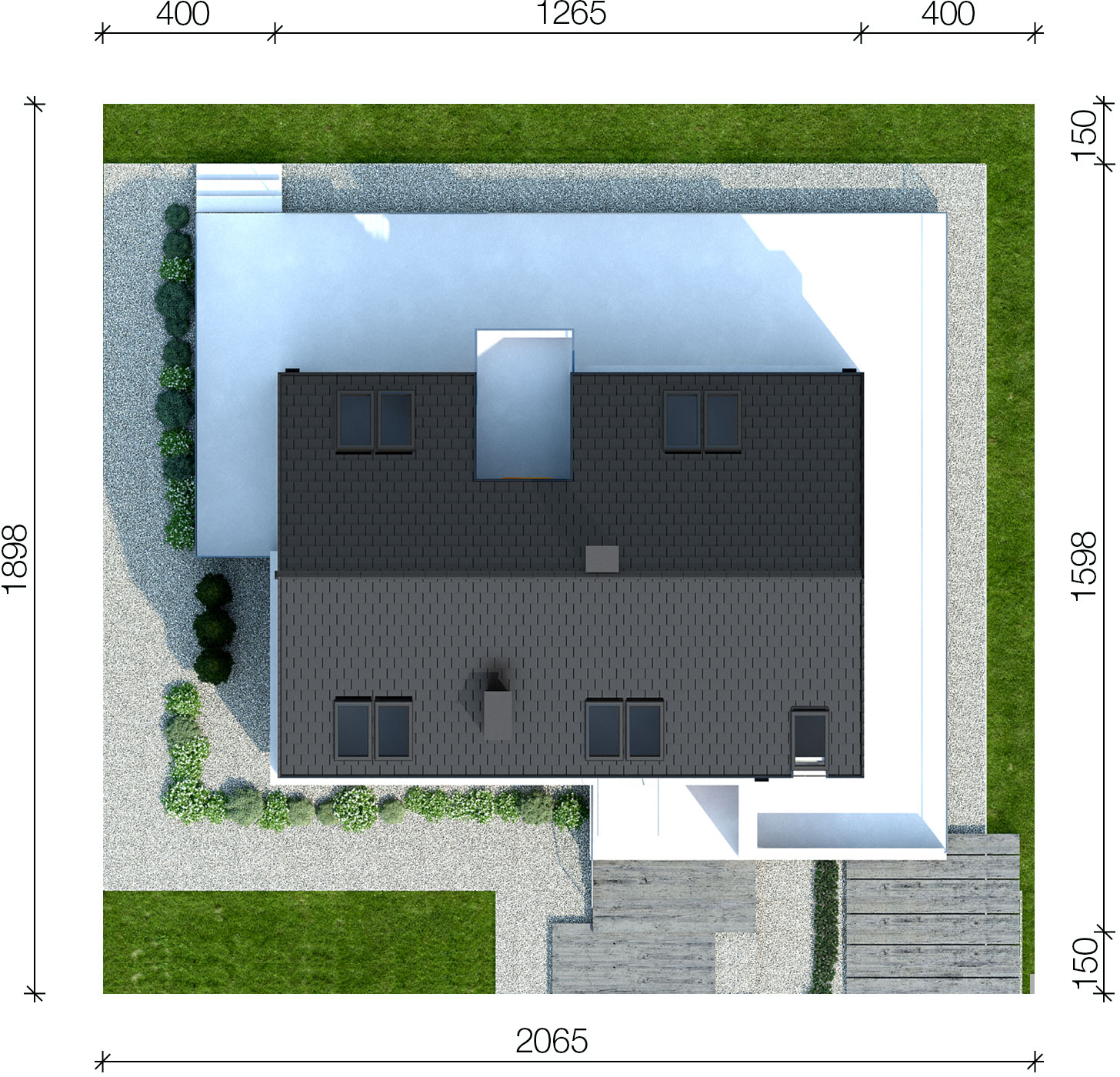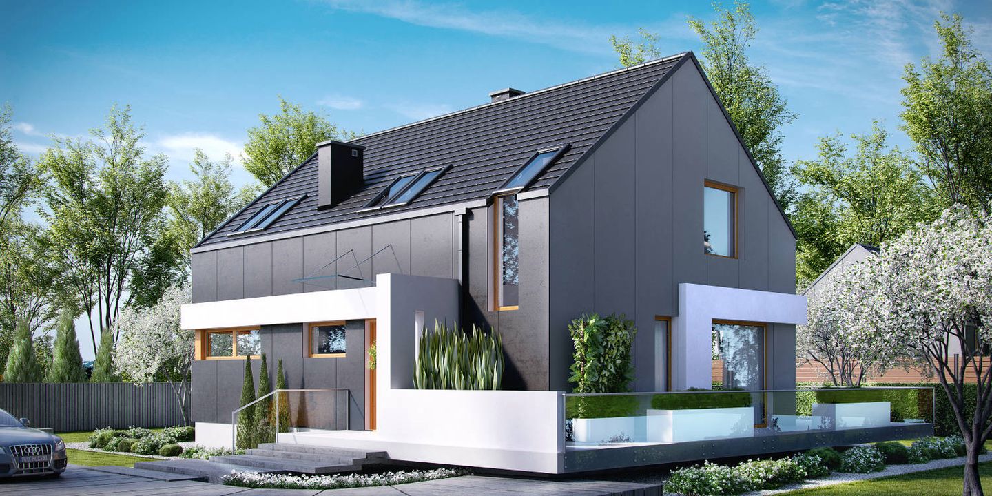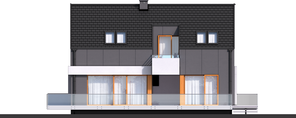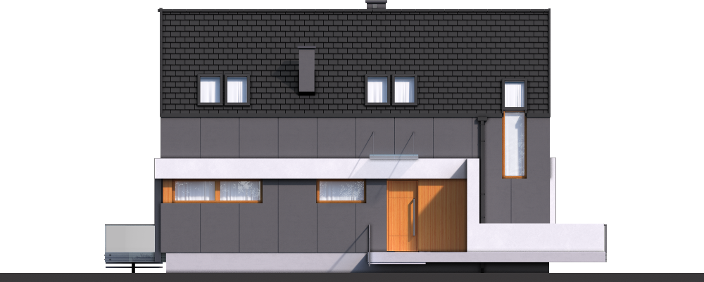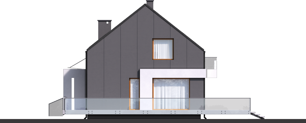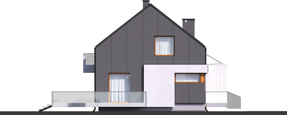 Graficzne opracowanie rzutów poglądowych widocznych na karcie projektu zostało wykonane przez Extradom.pl. Prezentowane przez Extradom.pl wizualizacje wykonane zostały przez autora projektu i należy poczytywać je jedynie za przykład i propozycję wykończenia, wizję architektoniczną autora projektu. Ostateczne wykończenie budynku może nastąpić na wiele sposobów. Szczegółowe rozwiązania zastosowane w oferowanej dokumentacji - w tym również ilość, lokalizacje i wygląd okien, drzwi, kominów - mogą w niewielkim stopniu różnić się od prezentowanej wizualizacji budynku.