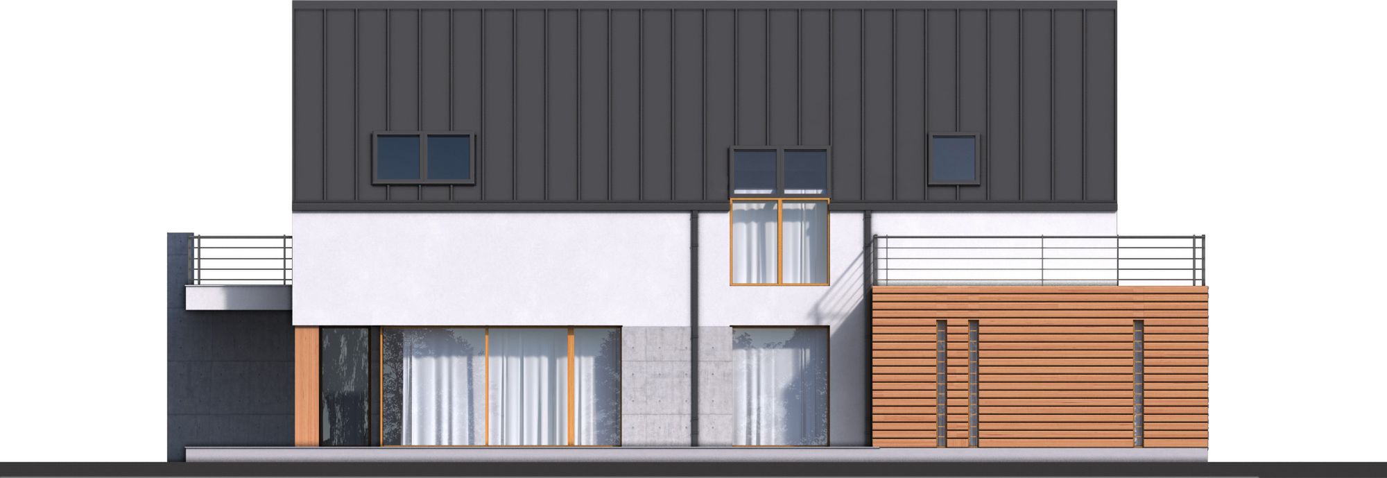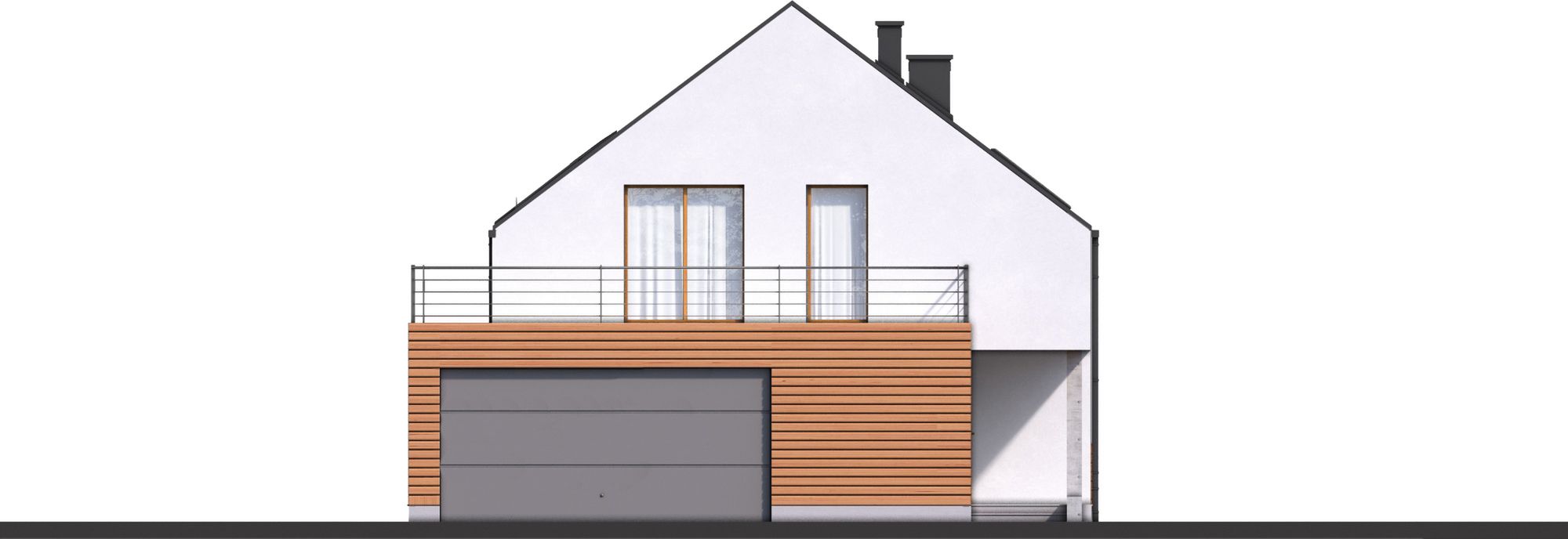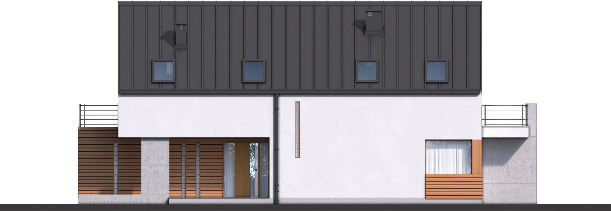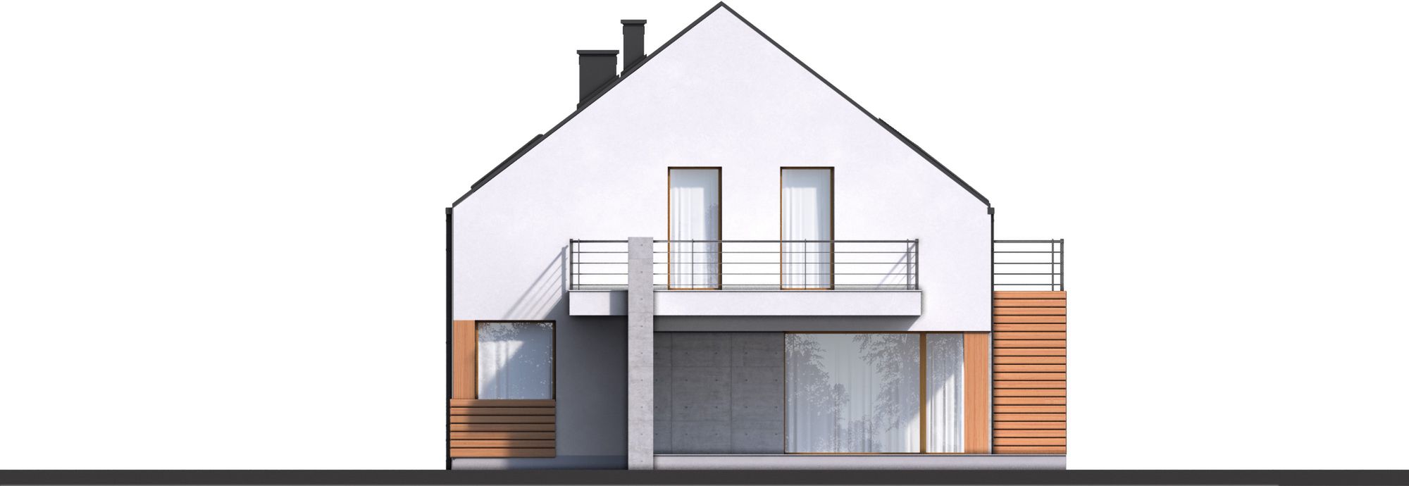 Graficzne opracowanie rzutów poglądowych widocznych na karcie projektu zostało wykonane przez Extradom.pl. Prezentowane przez Extradom.pl wizualizacje wykonane zostały przez autora projektu i należy poczytywać je jedynie za przykład i propozycję wykończenia, wizję architektoniczną autora projektu. Ostateczne wykończenie budynku może nastąpić na wiele sposobów. Szczegółowe rozwiązania zastosowane w oferowanej dokumentacji - w tym również ilość, lokalizacje i wygląd okien, drzwi, kominów - mogą w niewielkim stopniu różnić się od prezentowanej wizualizacji budynku.