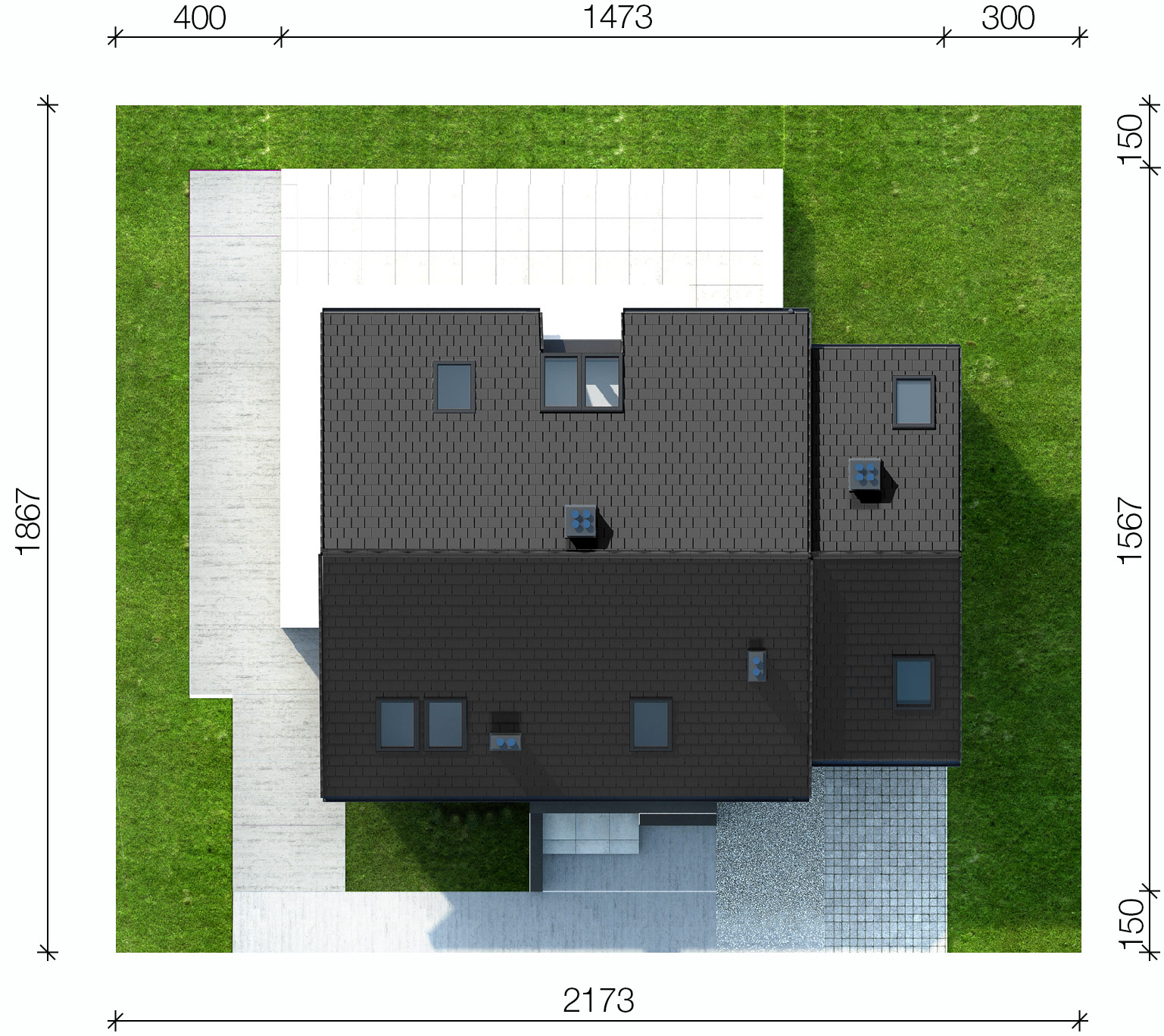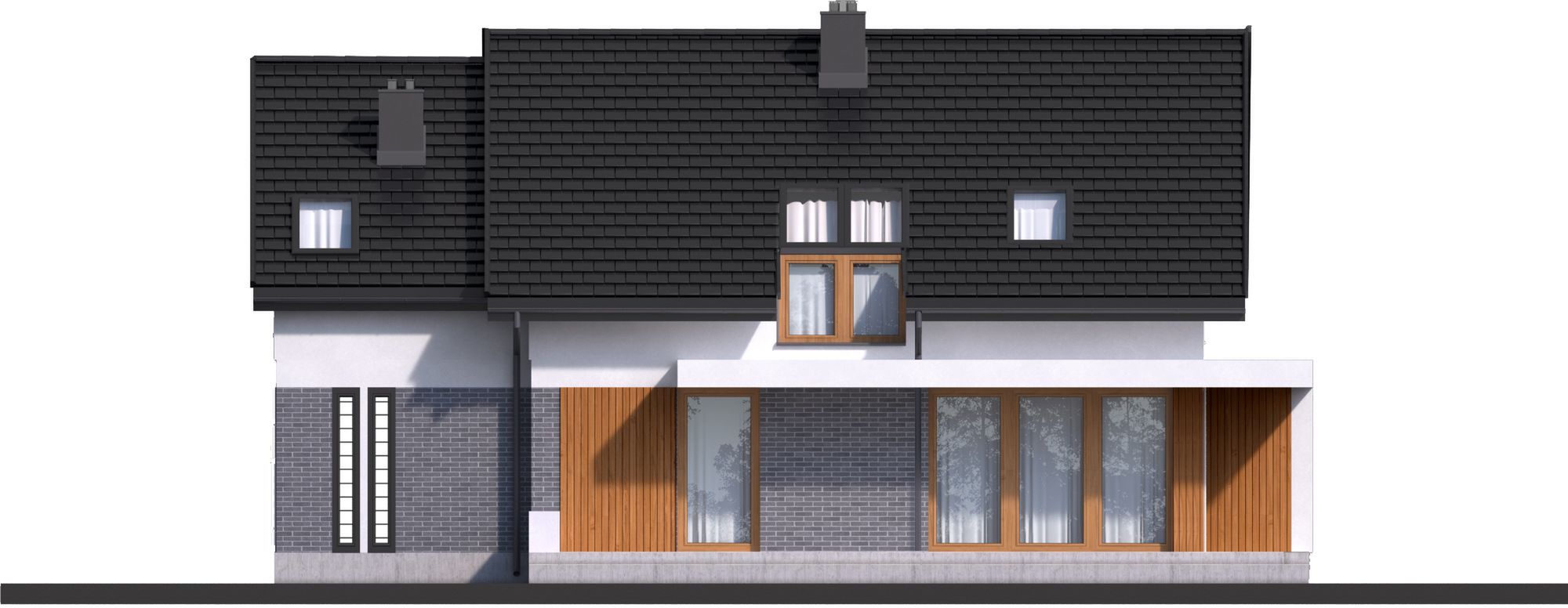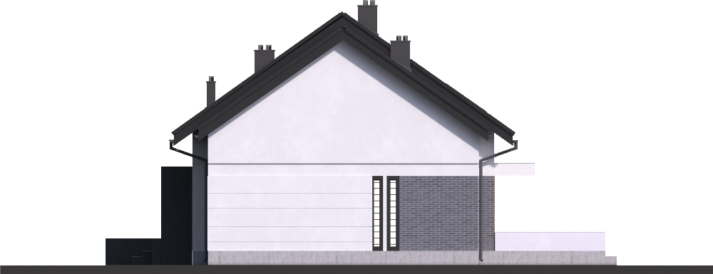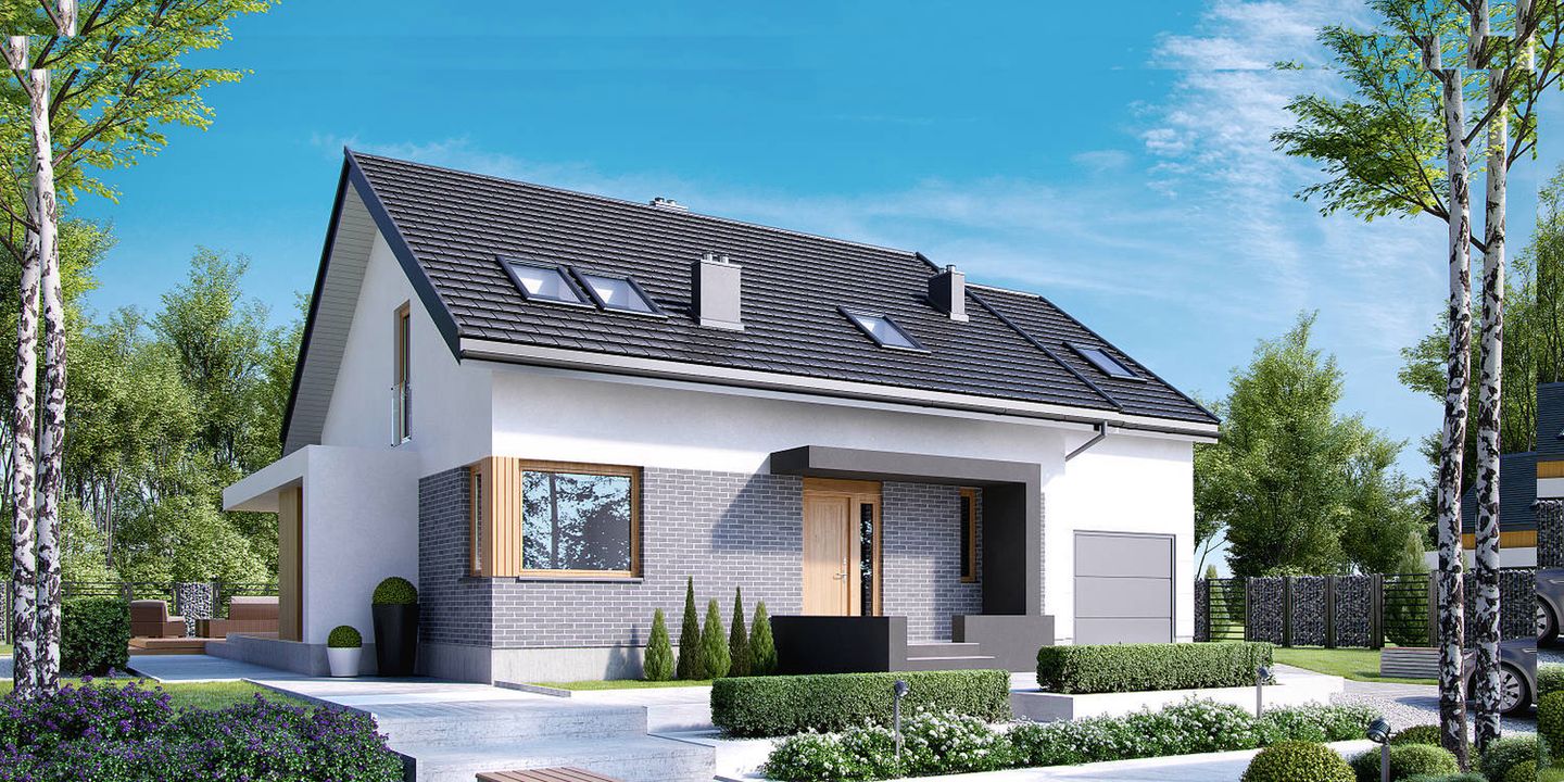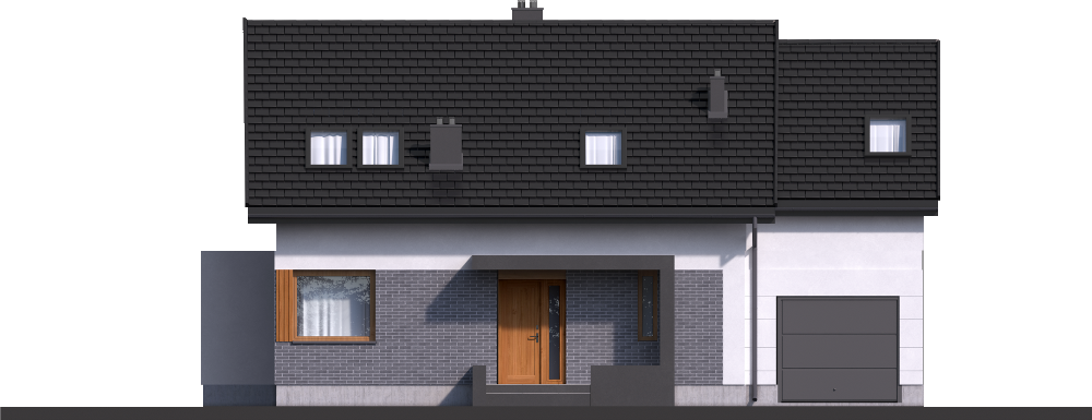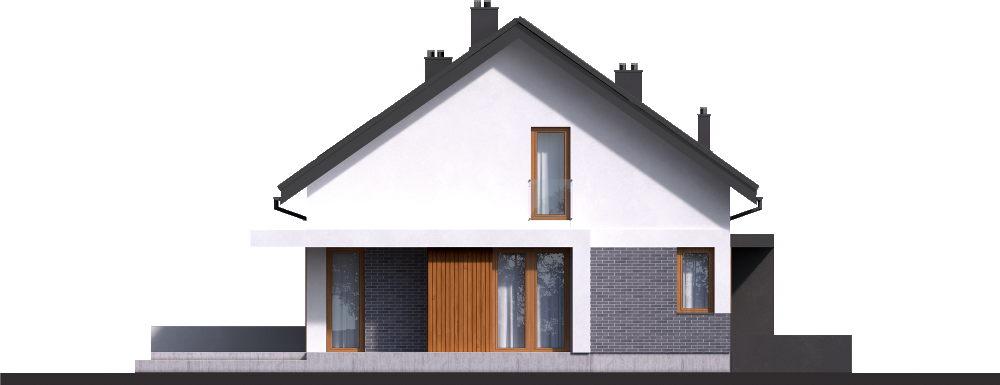 Graficzne opracowanie rzutów poglądowych widocznych na karcie projektu zostało wykonane przez Extradom.pl. Prezentowane przez Extradom.pl wizualizacje wykonane zostały przez autora projektu i należy poczytywać je jedynie za przykład i propozycję wykończenia, wizję architektoniczną autora projektu. Ostateczne wykończenie budynku może nastąpić na wiele sposobów. Szczegółowe rozwiązania zastosowane w oferowanej dokumentacji - w tym również ilość, lokalizacje i wygląd okien, drzwi, kominów - mogą w niewielkim stopniu różnić się od prezentowanej wizualizacji budynku.