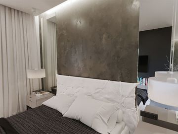 Fundamenty: tradycyjne - na ławach fundamentowych. Strop: żelbetowy wylewany. Ściany: dwuwarstwowe - pustak ceramiczny 25 cm + styropian Termo Organika 20 cm/wełna mineralna 18 cm. Dach: tradycyjna więźba dachowa pokryta dachówką ceramiczną lub cementową CREATON . Elewacja: betonowe płyty elewacyjne połączone z tynkiem i drewnem elewacyjnym. Ogrzewanie: gazowe - piec kondensacyjny oraz ogrzewanie podłogowe w salonie, kuchni, jadalni, łazienkach, komunikacji, pralni, garderobie i wiatrołapie, tradycyjne grzejniki w pozostałych pomieszczeniach. Wentylacja: mechaniczna z rekuperacją.