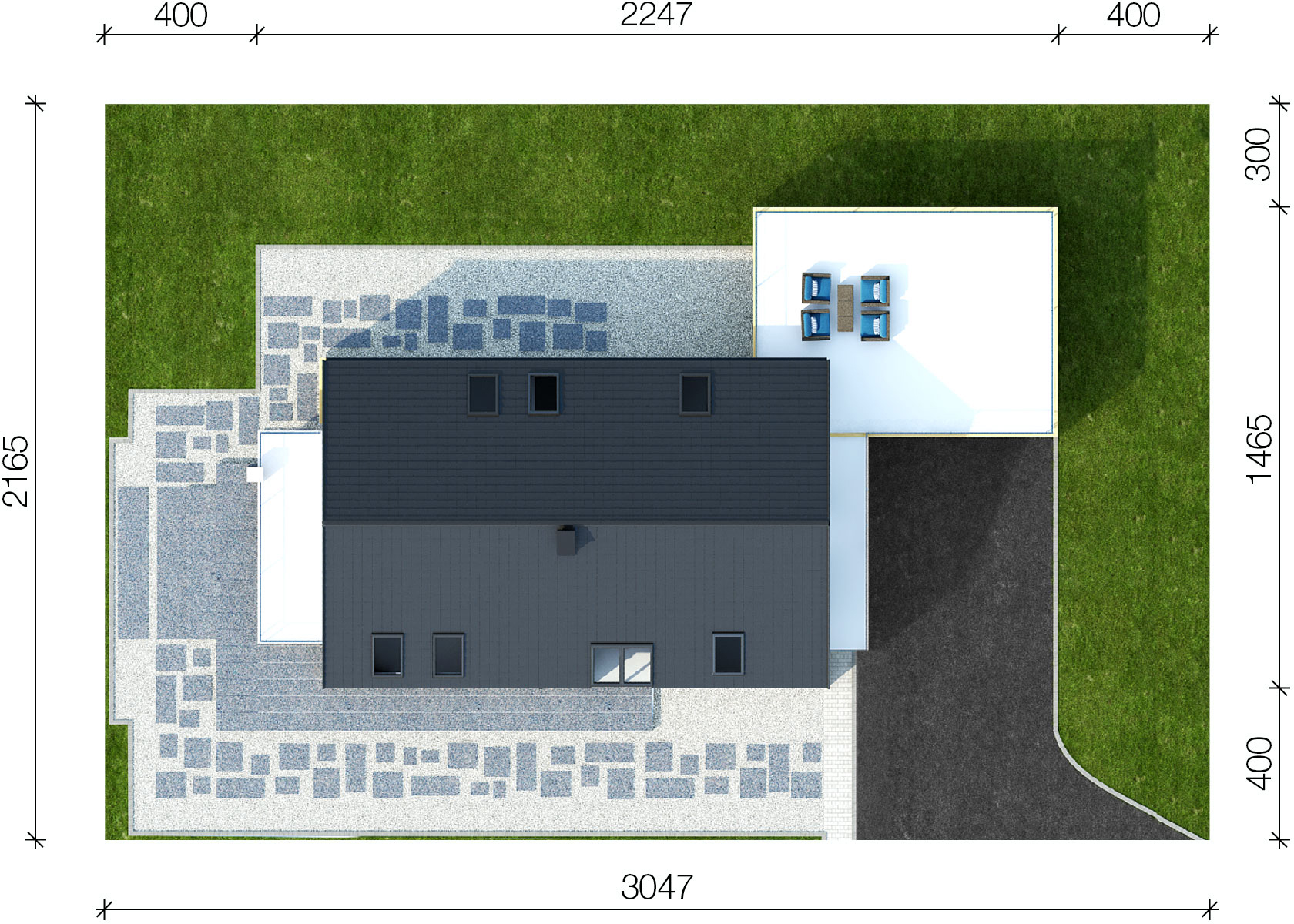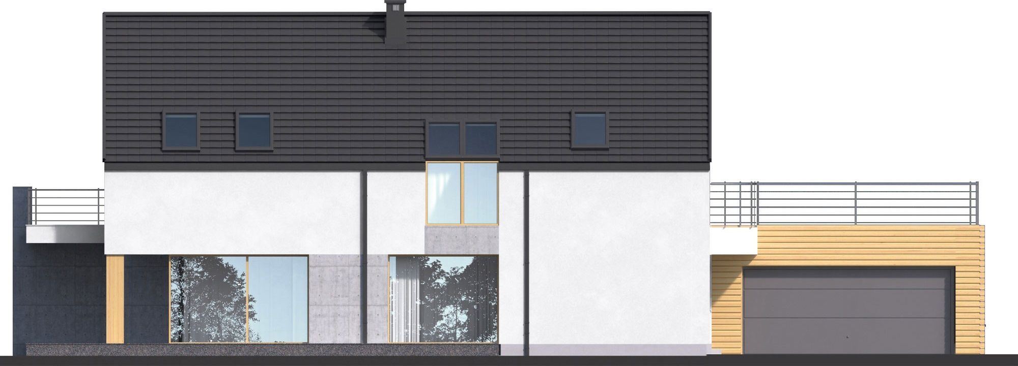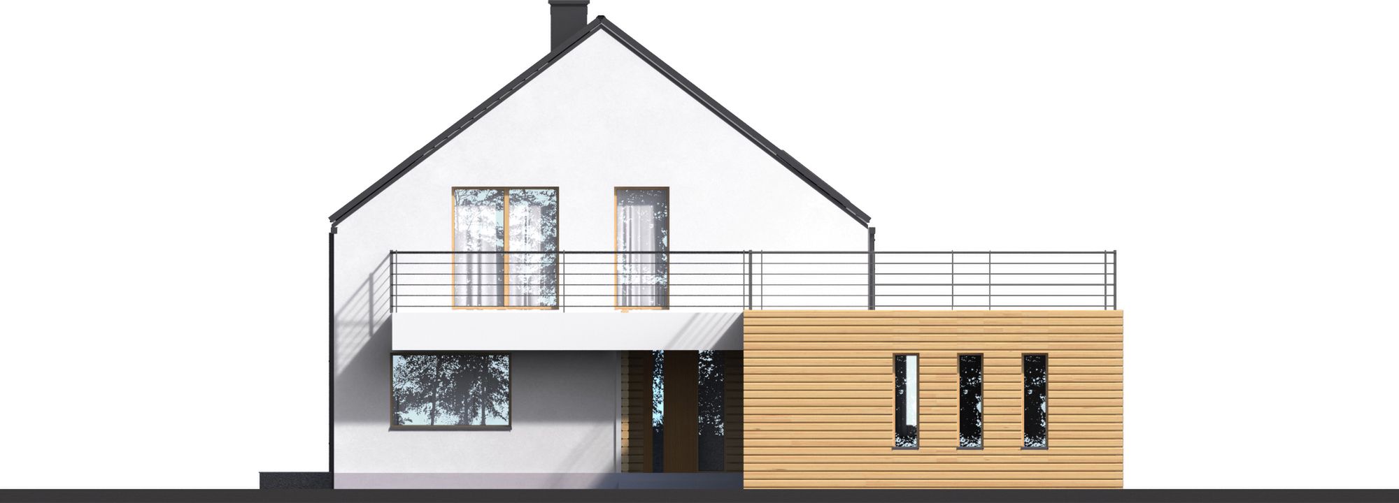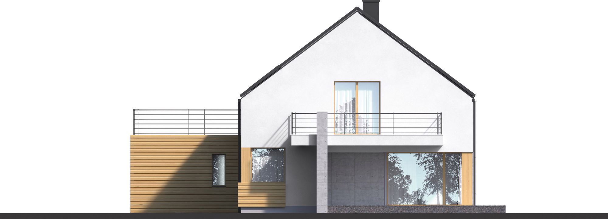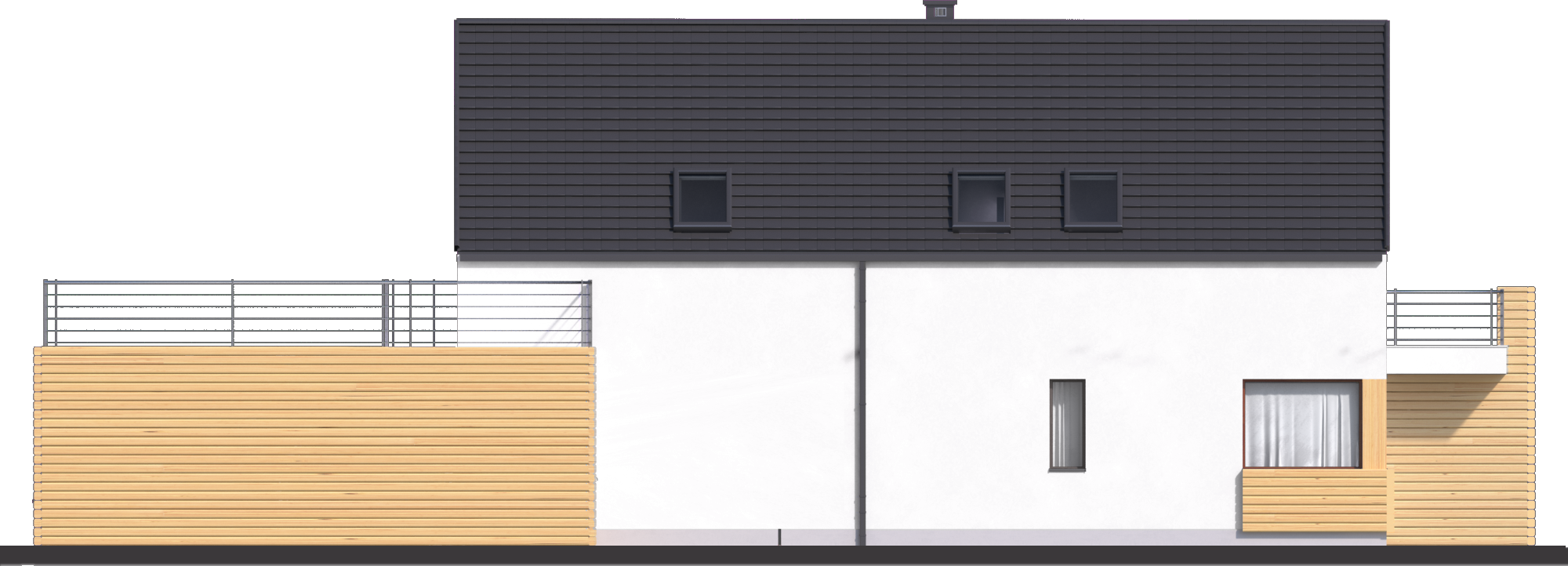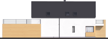 Graficzne opracowanie rzutów poglądowych widocznych na karcie projektu zostało wykonane przez Extradom.pl. Prezentowane przez Extradom.pl wizualizacje wykonane zostały przez autora projektu i należy poczytywać je jedynie za przykład i propozycję wykończenia, wizję architektoniczną autora projektu. Ostateczne wykończenie budynku może nastąpić na wiele sposobów. Szczegółowe rozwiązania zastosowane w oferowanej dokumentacji - w tym również ilość, lokalizacje i wygląd okien, drzwi, kominów - mogą w niewielkim stopniu różnić się od prezentowanej wizualizacji budynku.