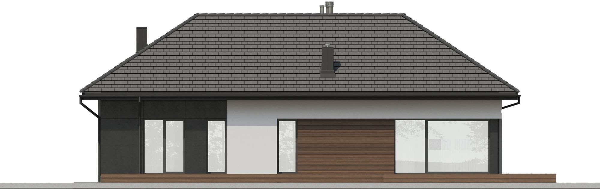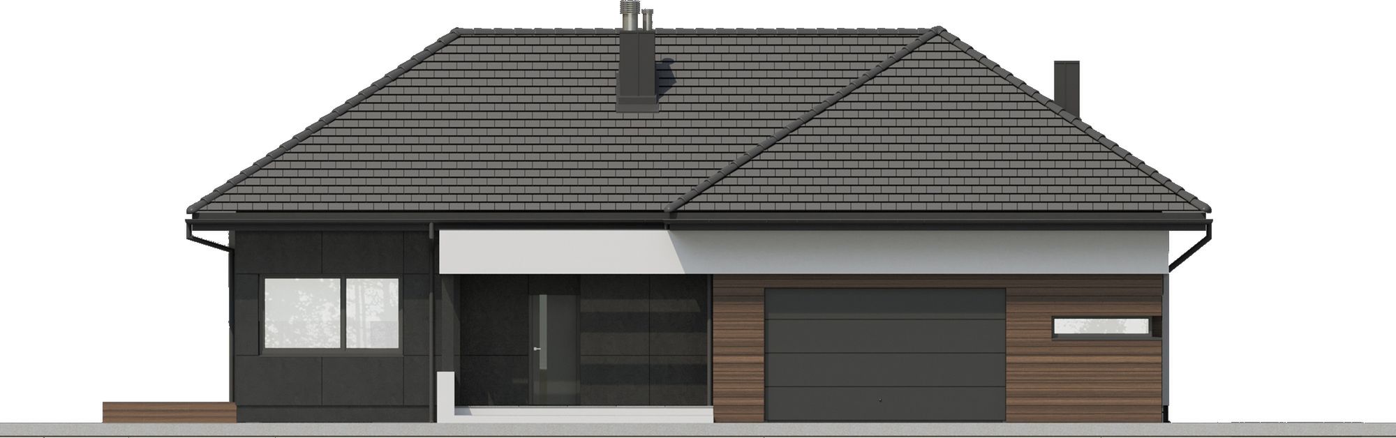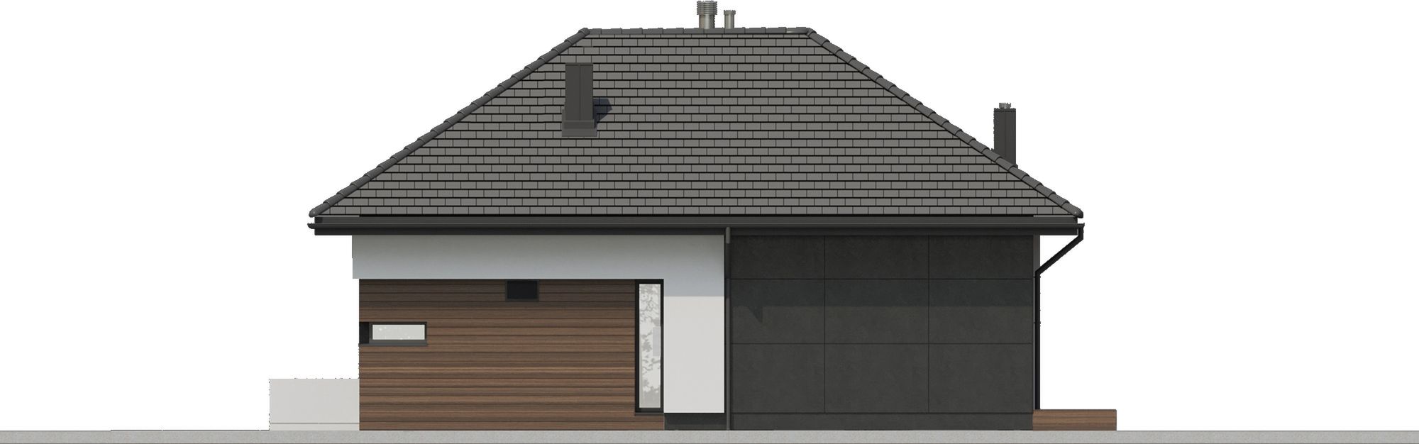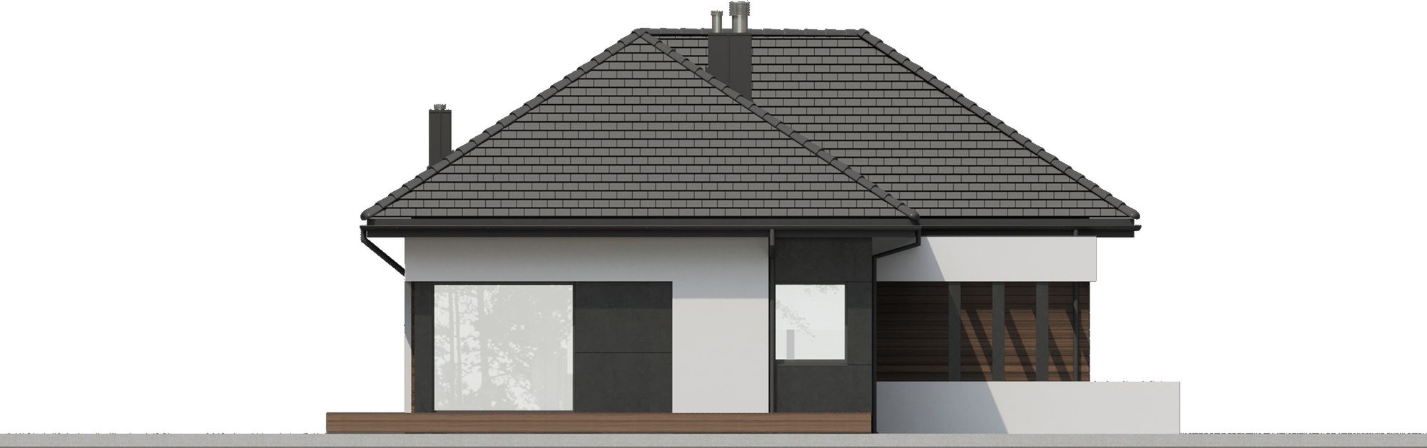 Graficzne opracowanie rzutów poglądowych widocznych na karcie projektu zostało wykonane przez Extradom.pl. Prezentowane przez Extradom.pl wizualizacje wykonane zostały przez autora projektu i należy poczytywać je jedynie za przykład i propozycję wykończenia, wizję architektoniczną autora projektu. Ostateczne wykończenie budynku może nastąpić na wiele sposobów. Szczegółowe rozwiązania zastosowane w oferowanej dokumentacji - w tym również ilość, lokalizacje i wygląd okien, drzwi, kominów - mogą w niewielkim stopniu różnić się od prezentowanej wizualizacji budynku.
