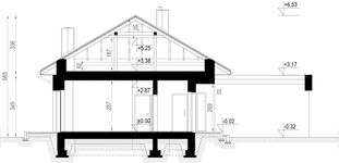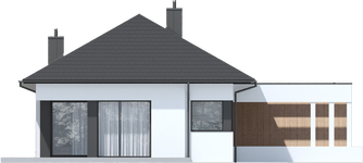 Graficzne opracowanie rzutów poglądowych widocznych na karcie projektu zostało wykonane przez Extradom.pl. Prezentowane przez Extradom.pl wizualizacje wykonane zostały przez autora projektu i należy poczytywać je jedynie za przykład i propozycję wykończenia, wizję architektoniczną autora projektu. Ostateczne wykończenie budynku może nastąpić na wiele sposobów. Szczegółowe rozwiązania zastosowane w oferowanej dokumentacji - w tym również ilość, lokalizacje i wygląd okien, drzwi, kominów - mogą w niewielkim stopniu różnić się od prezentowanej wizualizacji budynku.