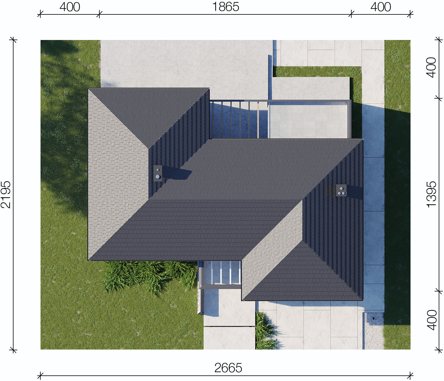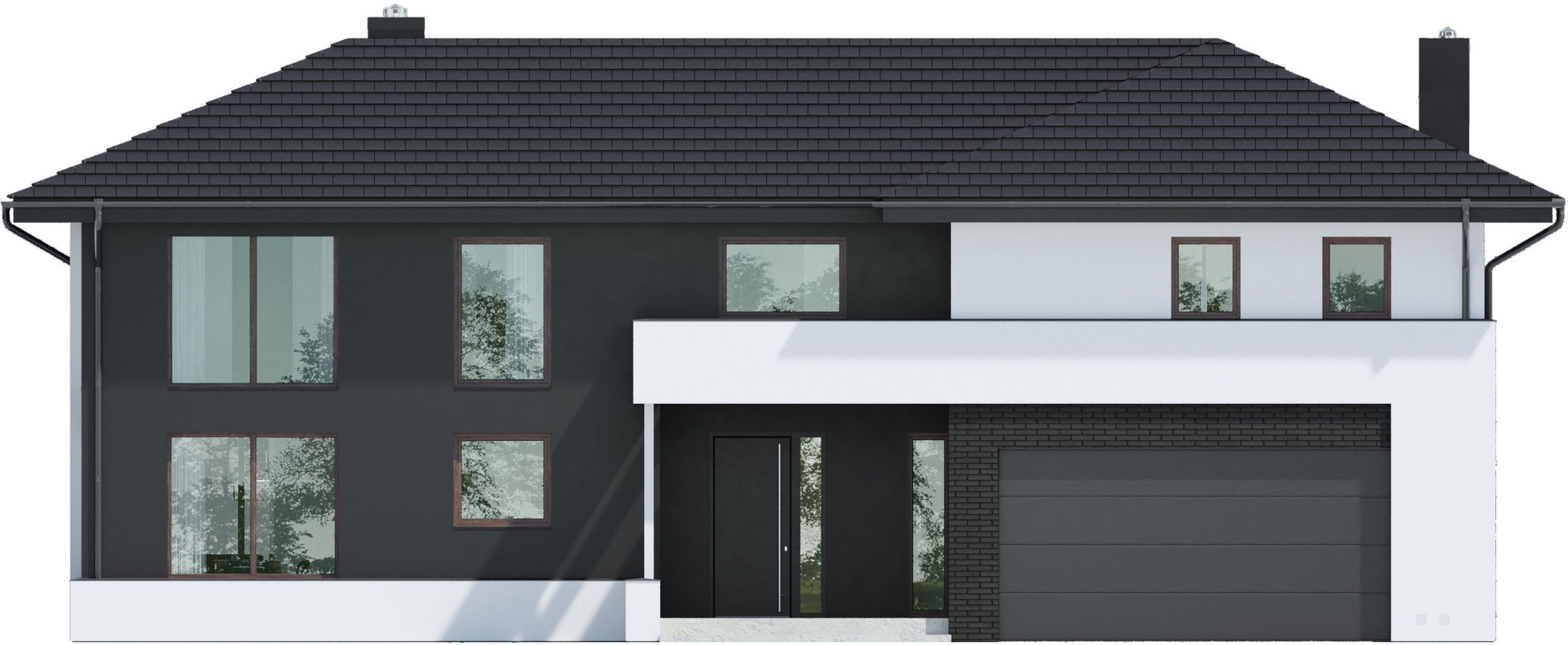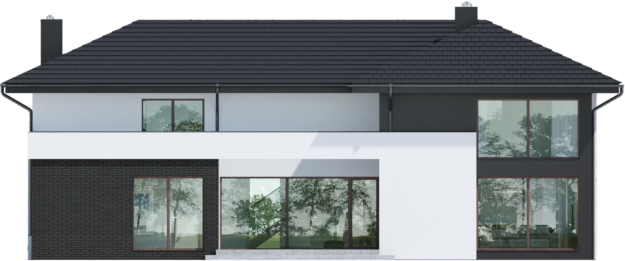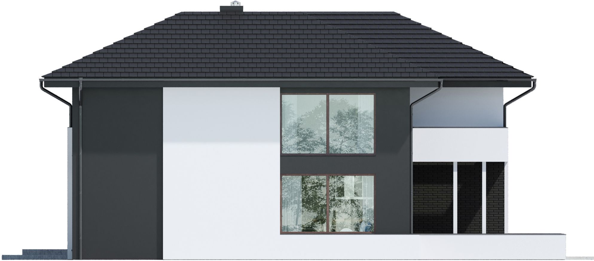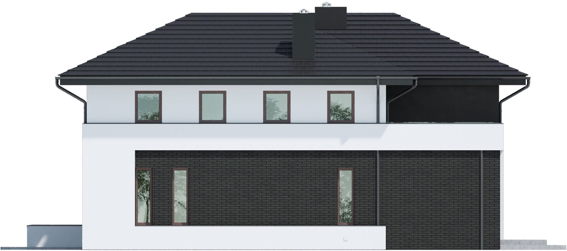 Graficzne opracowanie rzutów poglądowych widocznych na karcie projektu zostało wykonane przez Extradom.pl. Prezentowane przez Extradom.pl wizualizacje wykonane zostały przez autora projektu i należy poczytywać je jedynie za przykład i propozycję wykończenia, wizję architektoniczną autora projektu. Ostateczne wykończenie budynku może nastąpić na wiele sposobów. Szczegółowe rozwiązania zastosowane w oferowanej dokumentacji - w tym również ilość, lokalizacje i wygląd okien, drzwi, kominów - mogą w niewielkim stopniu różnić się od prezentowanej wizualizacji budynku.