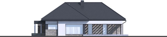 Graficzne opracowanie rzutów poglądowych widocznych na karcie projektu zostało wykonane przez Extradom.pl. Prezentowane przez Extradom.pl wizualizacje wykonane zostały przez autora projektu i należy poczytywać je jedynie za przykład i propozycję wykończenia, wizję architektoniczną autora projektu. Ostateczne wykończenie budynku może nastąpić na wiele sposobów. Szczegółowe rozwiązania zastosowane w oferowanej dokumentacji - w tym również ilość, lokalizacje i wygląd okien, drzwi, kominów - mogą w niewielkim stopniu różnić się od prezentowanej wizualizacji budynku.
