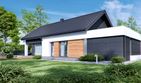 Graficzne opracowanie rzutów poglądowych widocznych na karcie projektu zostało wykonane przez Extradom.pl. Prezentowane przez Extradom.pl wizualizacje wykonane zostały przez autora projektu i należy poczytywać je jedynie za przykład i propozycję wykończenia, wizję architektoniczną autora projektu. Ostateczne wykończenie budynku może nastąpić na wiele sposobów. Szczegółowe rozwiązania zastosowane w oferowanej dokumentacji - w tym również ilość, lokalizacje i wygląd okien, drzwi, kominów - mogą w niewielkim stopniu różnić się od prezentowanej wizualizacji budynku.