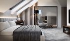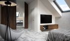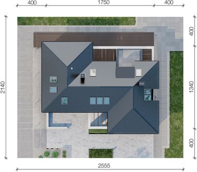 Graficzne opracowanie rzutów poglądowych widocznych na karcie projektu zostało wykonane przez Extradom.pl. Prezentowane przez Extradom.pl wizualizacje wykonane zostały przez autora projektu i należy poczytywać je jedynie za przykład i propozycję wykończenia, wizję architektoniczną autora projektu. Ostateczne wykończenie budynku może nastąpić na wiele sposobów. Szczegółowe rozwiązania zastosowane w oferowanej dokumentacji - w tym również ilość, lokalizacje i wygląd okien, drzwi, kominów - mogą w niewielkim stopniu różnić się od prezentowanej wizualizacji budynku.
