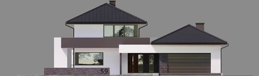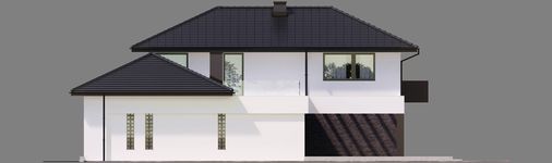 Graficzne opracowanie rzutów poglądowych widocznych na karcie projektu zostało wykonane przez Extradom.pl. Prezentowane przez Extradom.pl wizualizacje wykonane zostały przez autora projektu i należy poczytywać je jedynie za przykład i propozycję wykończenia, wizję architektoniczną autora projektu. Ostateczne wykończenie budynku może nastąpić na wiele sposobów. Szczegółowe rozwiązania zastosowane w oferowanej dokumentacji - w tym również ilość, lokalizacje i wygląd okien, drzwi, kominów - mogą w niewielkim stopniu różnić się od prezentowanej wizualizacji budynku.