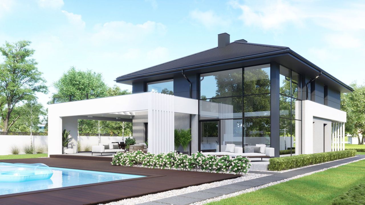 To projekt nowoczesnej, piętrowej willi z dwustanowiskowym garażem, stworzony dla 4-5 osobowej rodziny, która ceni sobie luksus, przestronne wnętrza i niebanalne rozwiązania architektoniczne. Imponująca strefa dzienna z antresolą i wyraźny podział na strefy funkcjonalne gwarantują komfort na najwyższym poziomie.