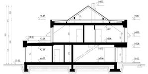 Fundamenty: tradycyjne - na ławach fundamentowych. Ściany: dwuwarstwowe - pustak ceramiczny 25 cm + styropian 20 cm. Stropy: żelbetowe wylewane schody żelbetowe wylewane jednobiegowe dach tradycyjna więźba dachowa pokryta dachówką ceramiczną lub cementową. Elewacja: tynk silikonowy w połączeniu z deską elewacyjną thermory thermo sosna skandynawska firmy komplex market. Ogrzewanie: gazowe - piec kondensacyjny. Ogrzewanie podłogowe w wiatrołapie, komunikacji, salonie, jadalni, kuchni, łazienkach, garderobie, pralni oraz tradycyjne grzejniki w pozostałych pomieszczeniach. Wentylacja grawitacyjna taras możliwe zadaszenie systemem tarasola - czytaj więcej.
