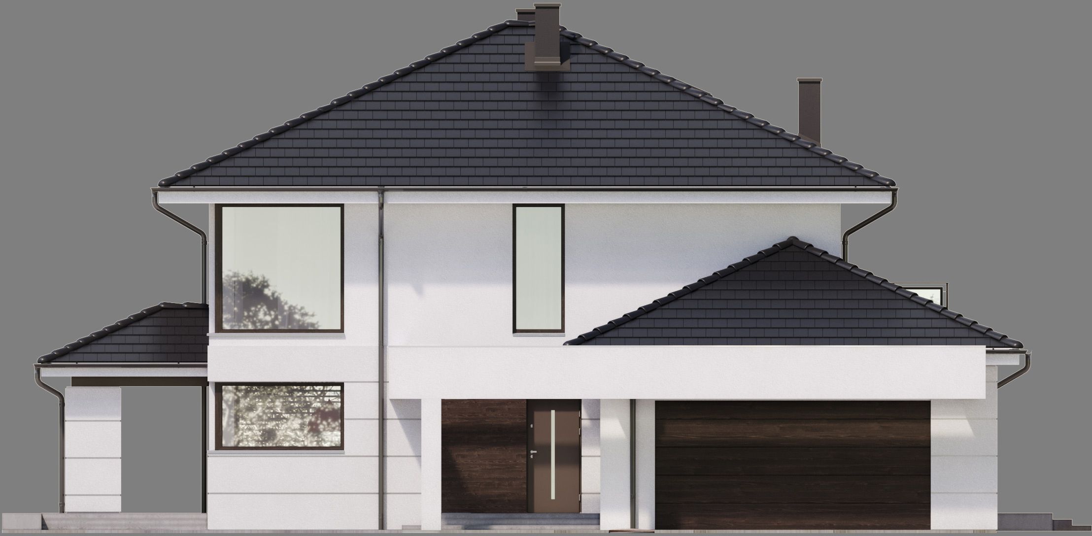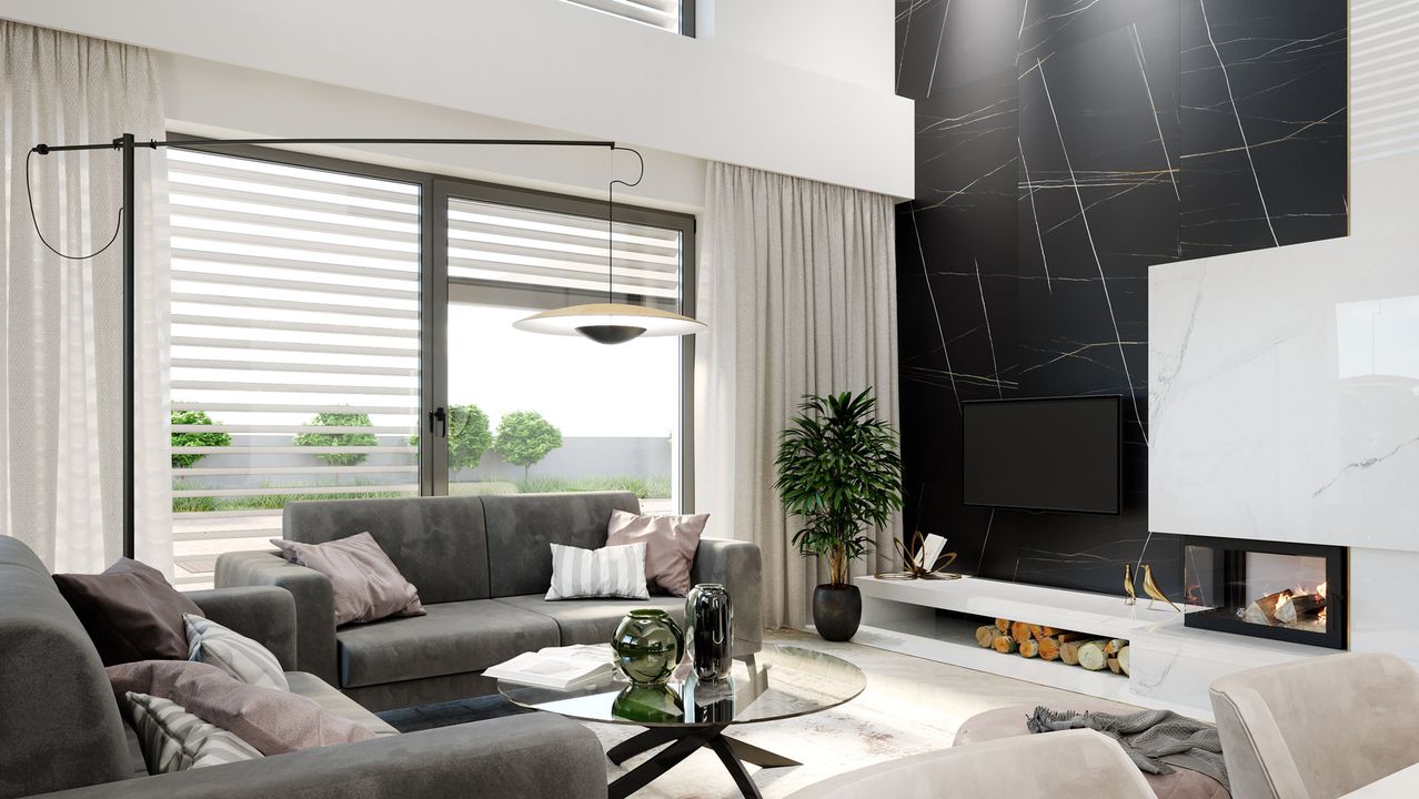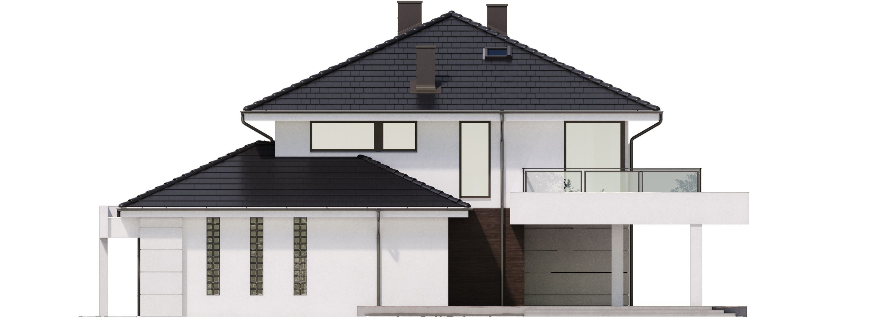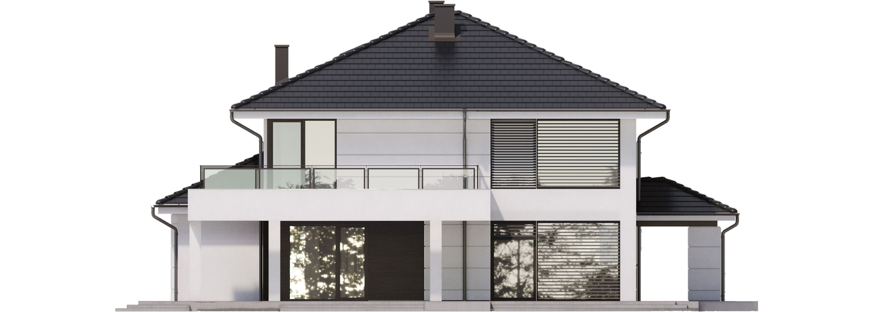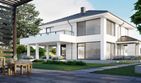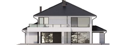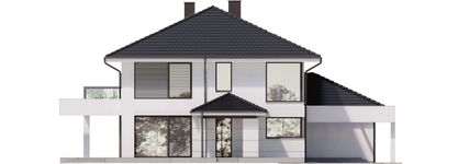 Graficzne opracowanie rzutów poglądowych widocznych na karcie projektu zostało wykonane przez Extradom.pl. Prezentowane przez Extradom.pl wizualizacje wykonane zostały przez autora projektu i należy poczytywać je jedynie za przykład i propozycję wykończenia, wizję architektoniczną autora projektu. Ostateczne wykończenie budynku może nastąpić na wiele sposobów. Szczegółowe rozwiązania zastosowane w oferowanej dokumentacji - w tym również ilość, lokalizacje i wygląd okien, drzwi, kominów - mogą w niewielkim stopniu różnić się od prezentowanej wizualizacji budynku.