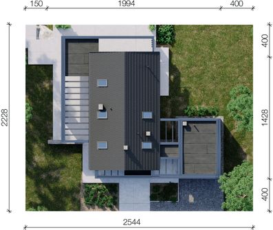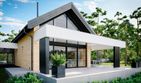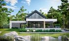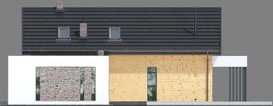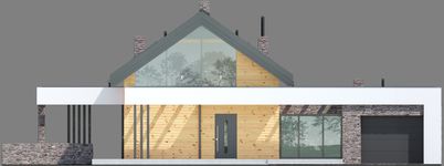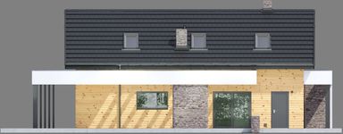 Graficzne opracowanie rzutów poglądowych widocznych na karcie projektu zostało wykonane przez Extradom.pl. Prezentowane przez Extradom.pl wizualizacje wykonane zostały przez autora projektu i należy poczytywać je jedynie za przykład i propozycję wykończenia, wizję architektoniczną autora projektu. Ostateczne wykończenie budynku może nastąpić na wiele sposobów. Szczegółowe rozwiązania zastosowane w oferowanej dokumentacji - w tym również ilość, lokalizacje i wygląd okien, drzwi, kominów - mogą w niewielkim stopniu różnić się od prezentowanej wizualizacji budynku.