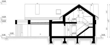 Fundamenty: tradycyjne - na ławach fundamentowych. Strop: żelbetowy wylewany. Ściany: dwuwarstwowe - pustak ceramiczny 25 cm + wełna mineralna 20 cm. Dach: tradycyjna więźba dachowa pokryta dachówką ceramiczną lub cementową CREATON, okna dachowe FAKRO. Elewacja: okładziny drewniane (sosna skandynawska) malowane na kolor heban połączone z tynkiem silikonowym. Ogrzewanie: gazowe - wspomagane poprzez kominek, ogrzewanie podłogowe w salonie, kuchni, jadalni, komunikacji, łazienkach oraz tradycyjne grzejniki w pozostałych pomieszczeniach. Wentylacja: mechaniczna z rekuperacją .