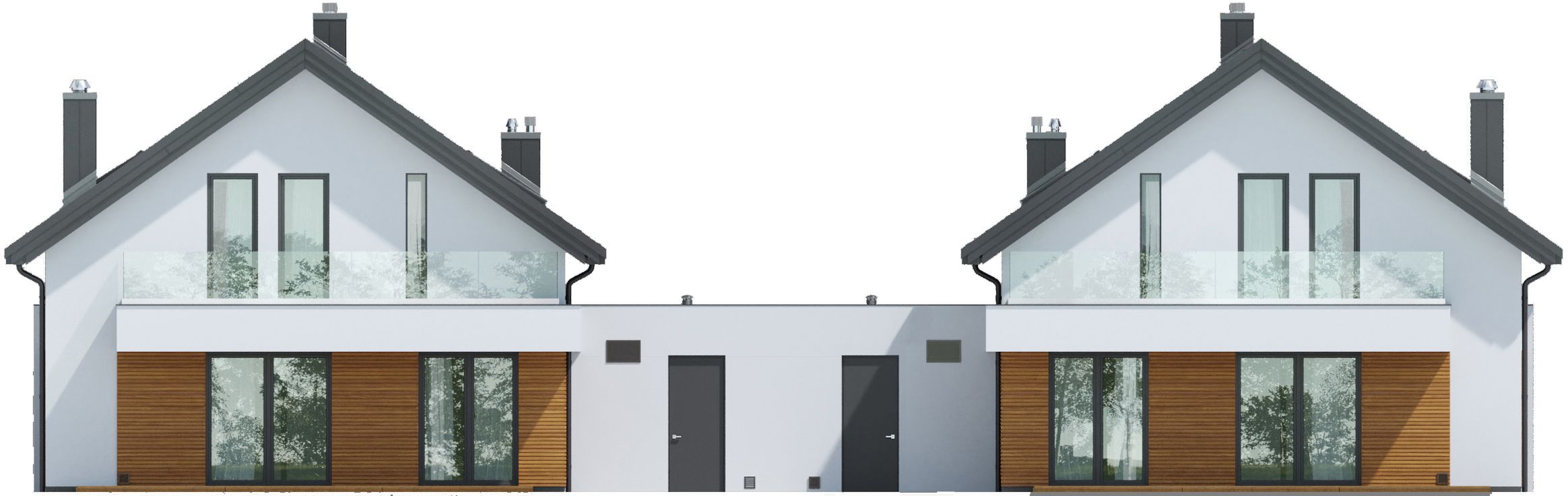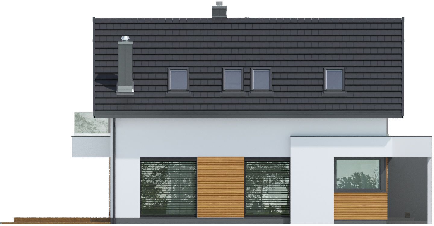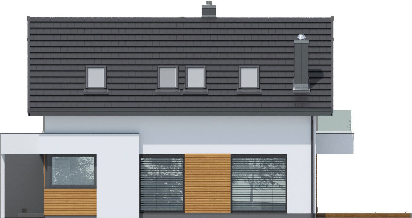 Graficzne opracowanie rzutów poglądowych widocznych na karcie projektu zostało wykonane przez Extradom.pl. Prezentowane przez Extradom.pl wizualizacje wykonane zostały przez autora projektu i należy poczytywać je jedynie za przykład i propozycję wykończenia, wizję architektoniczną autora projektu. Ostateczne wykończenie budynku może nastąpić na wiele sposobów. Szczegółowe rozwiązania zastosowane w oferowanej dokumentacji - w tym również ilość, lokalizacje i wygląd okien, drzwi, kominów - mogą w niewielkim stopniu różnić się od prezentowanej wizualizacji budynku.