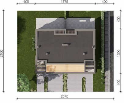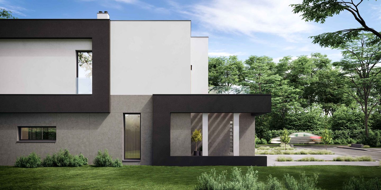 Graficzne opracowanie rzutów poglądowych widocznych na karcie projektu zostało wykonane przez Extradom.pl. Prezentowane przez Extradom.pl wizualizacje wykonane zostały przez autora projektu i należy poczytywać je jedynie za przykład i propozycję wykończenia, wizję architektoniczną autora projektu. Ostateczne wykończenie budynku może nastąpić na wiele sposobów. Szczegółowe rozwiązania zastosowane w oferowanej dokumentacji - w tym również ilość, lokalizacje i wygląd okien, drzwi, kominów - mogą w niewielkim stopniu różnić się od prezentowanej wizualizacji budynku.