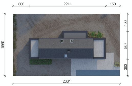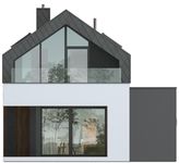 Graficzne opracowanie rzutów poglądowych widocznych na karcie projektu zostało wykonane przez Extradom.pl. Prezentowane przez Extradom.pl wizualizacje wykonane zostały przez autora projektu i należy poczytywać je jedynie za przykład i propozycję wykończenia, wizję architektoniczną autora projektu. Ostateczne wykończenie budynku może nastąpić na wiele sposobów. Szczegółowe rozwiązania zastosowane w oferowanej dokumentacji - w tym również ilość, lokalizacje i wygląd okien, drzwi, kominów - mogą w niewielkim stopniu różnić się od prezentowanej wizualizacji budynku.