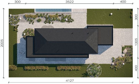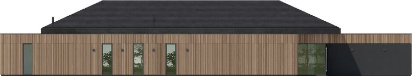 Graficzne opracowanie rzutów poglądowych widocznych na karcie projektu zostało wykonane przez Extradom.pl. Prezentowane przez Extradom.pl wizualizacje wykonane zostały przez autora projektu i należy poczytywać je jedynie za przykład i propozycję wykończenia, wizję architektoniczną autora projektu. Ostateczne wykończenie budynku może nastąpić na wiele sposobów. Szczegółowe rozwiązania zastosowane w oferowanej dokumentacji - w tym również ilość, lokalizacje i wygląd okien, drzwi, kominów - mogą w niewielkim stopniu różnić się od prezentowanej wizualizacji budynku.