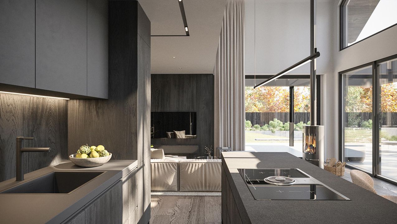 Fundamenty: tradycyjne - na ławach fundamentowych. Strop: żelbetowy, wylewany. Ściany: dwuwarstwowe - pustak ceramiczny 25 cm + styropian Termo Organika 20 cm/wełna mineralna Isover 15 cm. Dach: dwuspadowy; tradycyjna więźba dachowa pokryta dachówką ceramiczną Creaton. Elewacja: tynk silikonowy połączony z deską elewacyjną RelaxWood thermo świerk profil C15 w kolorze czarnym. Ogrzewanie: gazowe - piec kondensacyjny; ogrzewanie podłogowe w całym domu poza kotłownią; kotłowni tradycyjny grzejnik, w łazienkach dodatkowo grzejnik typu ręcznikowiec. Wentylacja: grawitacyjnaRolety podtynkowetak.