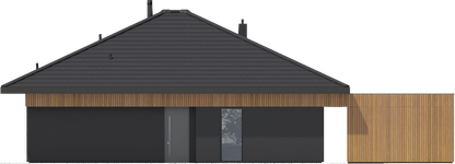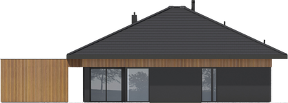 Graficzne opracowanie rzutów poglądowych widocznych na karcie projektu zostało wykonane przez Extradom.pl. Prezentowane przez Extradom.pl wizualizacje wykonane zostały przez autora projektu i należy poczytywać je jedynie za przykład i propozycję wykończenia, wizję architektoniczną autora projektu. Ostateczne wykończenie budynku może nastąpić na wiele sposobów. Szczegółowe rozwiązania zastosowane w oferowanej dokumentacji - w tym również ilość, lokalizacje i wygląd okien, drzwi, kominów - mogą w niewielkim stopniu różnić się od prezentowanej wizualizacji budynku.