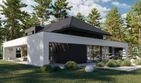 Graficzne opracowanie rzutów poglądowych widocznych na karcie projektu zostało wykonane przez Extradom.pl. Prezentowane przez Extradom.pl wizualizacje wykonane zostały przez autora projektu i należy poczytywać je jedynie za przykład i propozycję wykończenia, wizję architektoniczną autora projektu. Ostateczne wykończenie budynku może nastąpić na wiele sposobów. Szczegółowe rozwiązania zastosowane w oferowanej dokumentacji - w tym również ilość, lokalizacje i wygląd okien, drzwi, kominów - mogą w niewielkim stopniu różnić się od prezentowanej wizualizacji budynku.