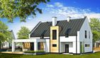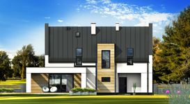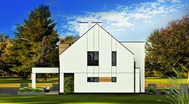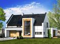 Graficzne opracowanie rzutów poglądowych widocznych na karcie projektu zostało wykonane przez Extradom.pl. Prezentowane przez Extradom.pl wizualizacje wykonane zostały przez autora projektu i należy poczytywać je jedynie za przykład i propozycję wykończenia, wizję architektoniczną autora projektu. Ostateczne wykończenie budynku może nastąpić na wiele sposobów. Szczegółowe rozwiązania zastosowane w oferowanej dokumentacji - w tym również ilość, lokalizacje i wygląd okien, drzwi, kominów - mogą w niewielkim stopniu różnić się od prezentowanej wizualizacji budynku.