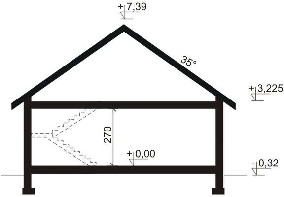 Fundamenty: bezpośrednie, na ławach i stopach fundamentowych. Ściany zewnętrzne: bloczki z bet. komórkowego - 24 cm + styropian TERMO ORGANIKA typ Fasada 20 cm. Ściany wewnętrzne: bloczki z bet. komórkowego - 24 cm (działowe - 12 cm). Strop: gęstożebrowy Teriva E oraz żelbetowy monolityczny gr. 24 cm. Elewacje: tynk - System firmy TERMO ORGANIKA, płytki klinkierowe. Pokrycie dachu: dachówka cementowa lub blachodachówka. Konstrukcja dachu: drewniana o układzie konstrukcyjnym płatwiowo-krokwiowym. Schody wewnętrzne: wyłaz na poddasze. Ogrzewanie: kocioł gazowy kondensacyjny, dodatkowe źródło ciepła - kominek z płaszczem wodnym. Projekt jest zgodny z wymaganiami WT2021, a konstrukcja była obliczana zgodnie z eurokodami.