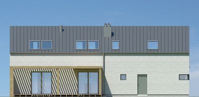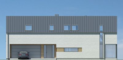 Graficzne opracowanie rzutów poglądowych widocznych na karcie projektu zostało wykonane przez Extradom.pl. Prezentowane przez Extradom.pl wizualizacje wykonane zostały przez autora projektu i należy poczytywać je jedynie za przykład i propozycję wykończenia, wizję architektoniczną autora projektu. Ostateczne wykończenie budynku może nastąpić na wiele sposobów. Szczegółowe rozwiązania zastosowane w oferowanej dokumentacji - w tym również ilość, lokalizacje i wygląd okien, drzwi, kominów - mogą w niewielkim stopniu różnić się od prezentowanej wizualizacji budynku.