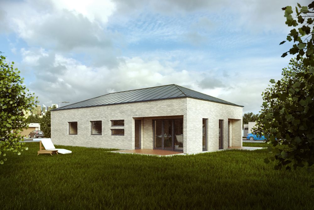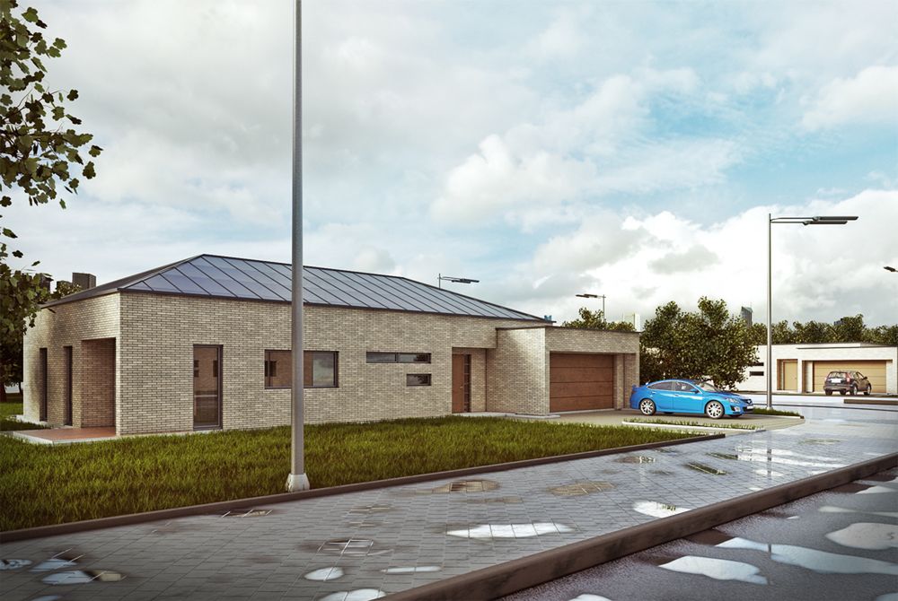 Graficzne opracowanie rzutów poglądowych widocznych na karcie projektu zostało wykonane przez Extradom.pl. Prezentowane przez Extradom.pl wizualizacje wykonane zostały przez autora projektu i należy poczytywać je jedynie za przykład i propozycję wykończenia, wizję architektoniczną autora projektu. Ostateczne wykończenie budynku może nastąpić na wiele sposobów. Szczegółowe rozwiązania zastosowane w oferowanej dokumentacji - w tym również ilość, lokalizacje i wygląd okien, drzwi, kominów - mogą w niewielkim stopniu różnić się od prezentowanej wizualizacji budynku.
