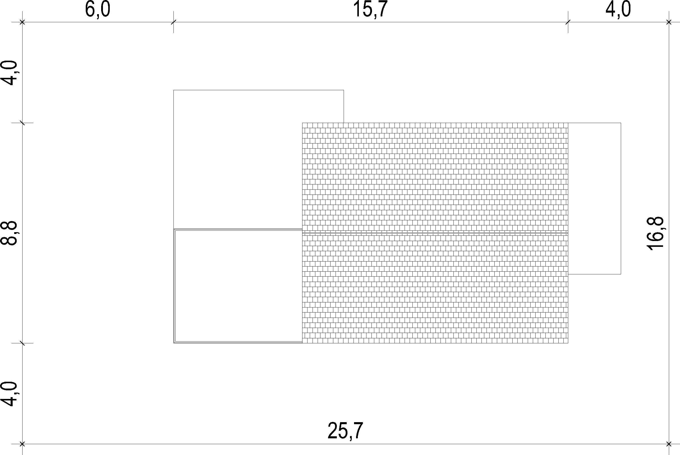 Ściany: bloczek silikatowy + izolacja termiczna 20 cm. Posadowienie: ławy fundamentowe. Stropy: żelbetowe prefabrykowane filigran. Dach: dachówka ceramiczna płaska. Elewacje: płytka elewacyjna ceglana.