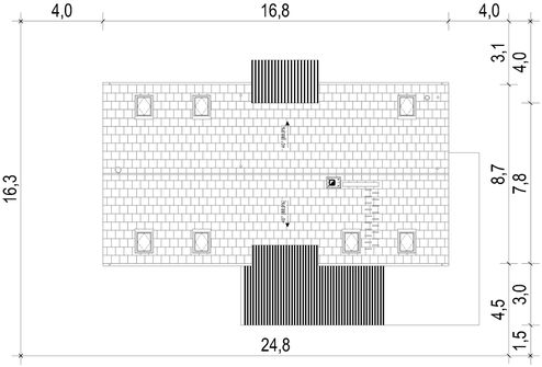 Graficzne opracowanie rzutów poglądowych widocznych na karcie projektu zostało wykonane przez Extradom.pl. Prezentowane przez Extradom.pl wizualizacje wykonane zostały przez autora projektu i należy poczytywać je jedynie za przykład i propozycję wykończenia, wizję architektoniczną autora projektu. Ostateczne wykończenie budynku może nastąpić na wiele sposobów. Szczegółowe rozwiązania zastosowane w oferowanej dokumentacji - w tym również ilość, lokalizacje i wygląd okien, drzwi, kominów - mogą w niewielkim stopniu różnić się od prezentowanej wizualizacji budynku.
