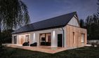 Ściany: silikaty + 20cm izolacji termicznej. Posadowienie: ławy fundamentowe. Dach – konstrukcja: więźba drewniana tradycyjna. Dach – pokrycie: dachówka ceramiczna płaska. Elewacje: deska elewacyjna / tynk silikatowy