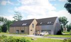 Graficzne opracowanie rzutów poglądowych widocznych na karcie projektu zostało wykonane przez Extradom.pl. Prezentowane przez Extradom.pl wizualizacje wykonane zostały przez autora projektu i należy poczytywać je jedynie za przykład i propozycję wykończenia, wizję architektoniczną autora projektu. Ostateczne wykończenie budynku może nastąpić na wiele sposobów. Szczegółowe rozwiązania zastosowane w oferowanej dokumentacji - w tym również ilość, lokalizacje i wygląd okien, drzwi, kominów - mogą w niewielkim stopniu różnić się od prezentowanej wizualizacji budynku.