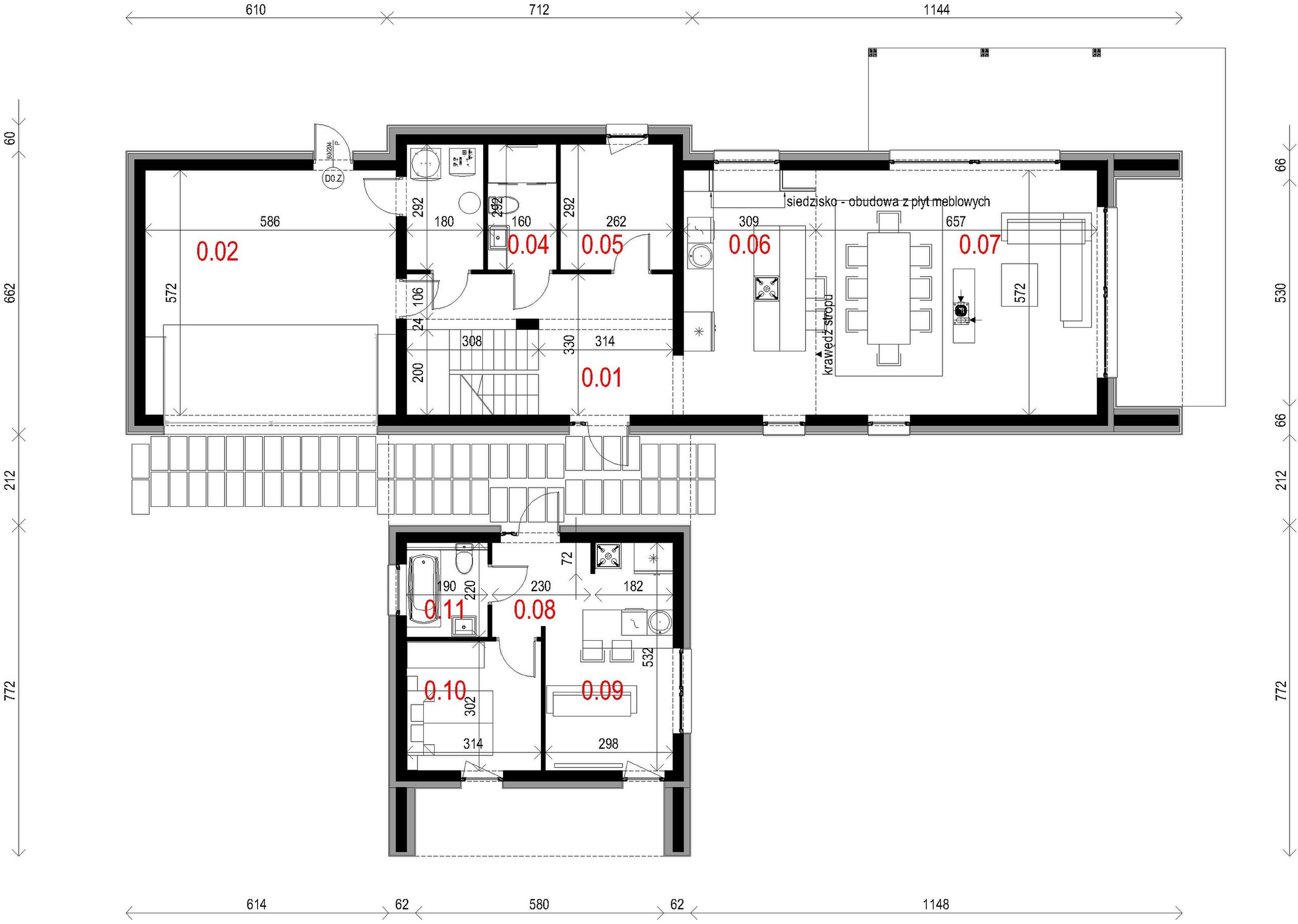Graficzne opracowanie rzutów poglądowych widocznych na karcie projektu zostało wykonane przez Extradom.pl. Prezentowane przez Extradom.pl wizualizacje wykonane zostały przez autora projektu i należy poczytywać je jedynie za przykład i propozycję wykończenia, wizję architektoniczną autora projektu. Ostateczne wykończenie budynku może nastąpić na wiele sposobów. Szczegółowe rozwiązania zastosowane w oferowanej dokumentacji - w tym również ilość, lokalizacje i wygląd okien, drzwi, kominów - mogą w niewielkim stopniu różnić się od prezentowanej wizualizacji budynku.