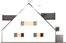 Graficzne opracowanie rzutów poglądowych widocznych na karcie projektu zostało wykonane przez Extradom.pl. Prezentowane przez Extradom.pl wizualizacje wykonane zostały przez autora projektu i należy poczytywać je jedynie za przykład i propozycję wykończenia, wizję architektoniczną autora projektu. Ostateczne wykończenie budynku może nastąpić na wiele sposobów. Szczegółowe rozwiązania zastosowane w oferowanej dokumentacji - w tym również ilość, lokalizacje i wygląd okien, drzwi, kominów - mogą w niewielkim stopniu różnić się od prezentowanej wizualizacji budynku.
